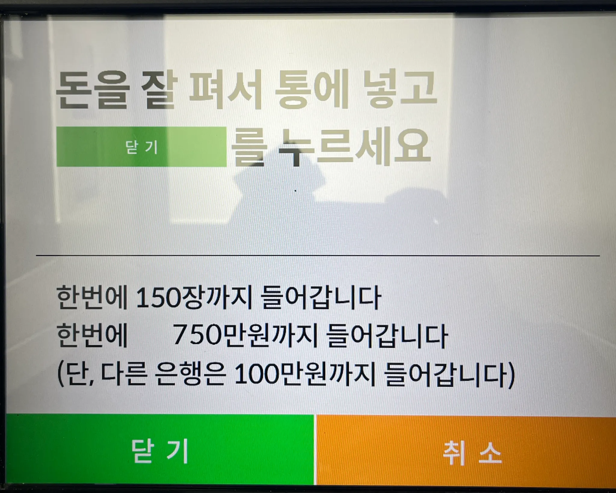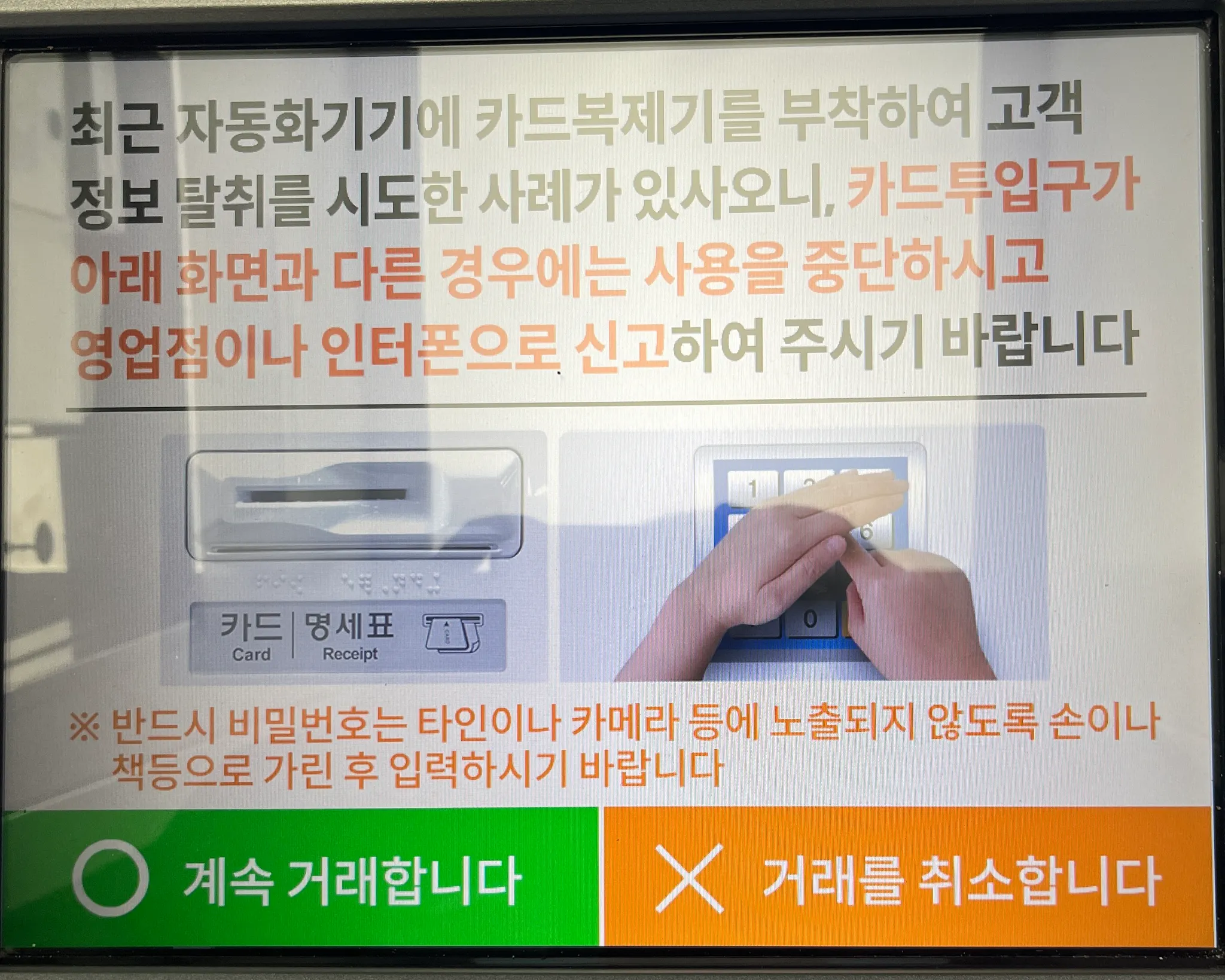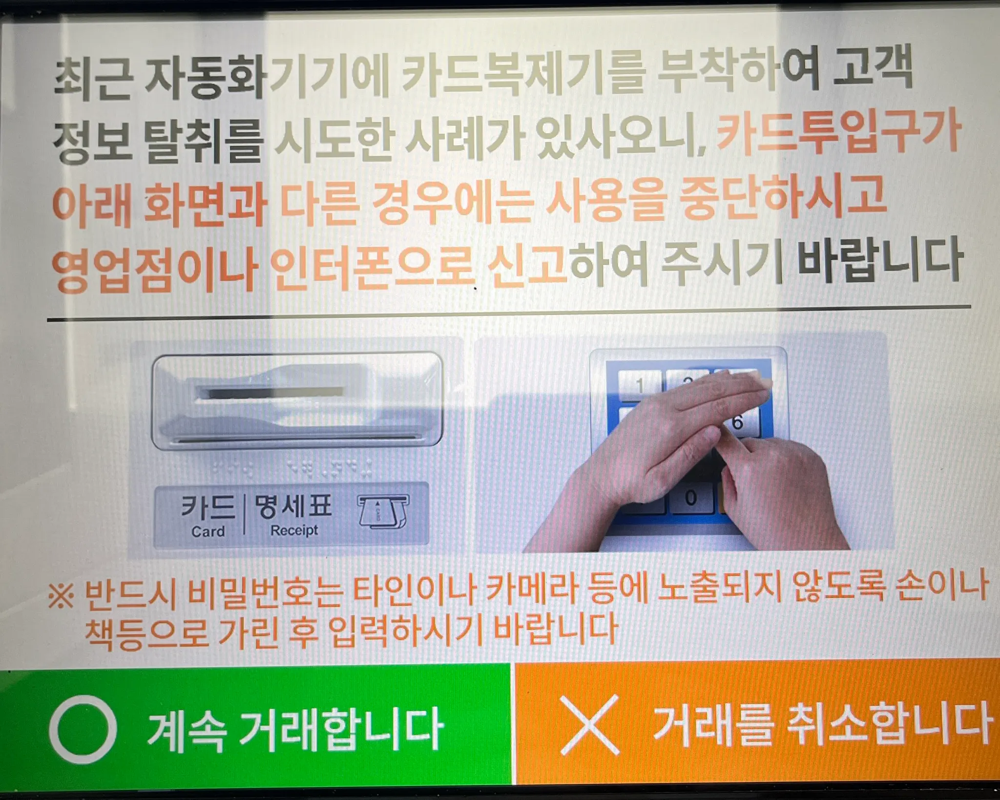 은행 ATM을 사용할 때마다 느끼는 점인데, 액정 눈높이가 90도 직각 아래에 있어서 장기간 사용(경우에 따라 오래 쓸 일도 있을거라 생각) 시에 목이 아플 것 같다는 생각을 했다.