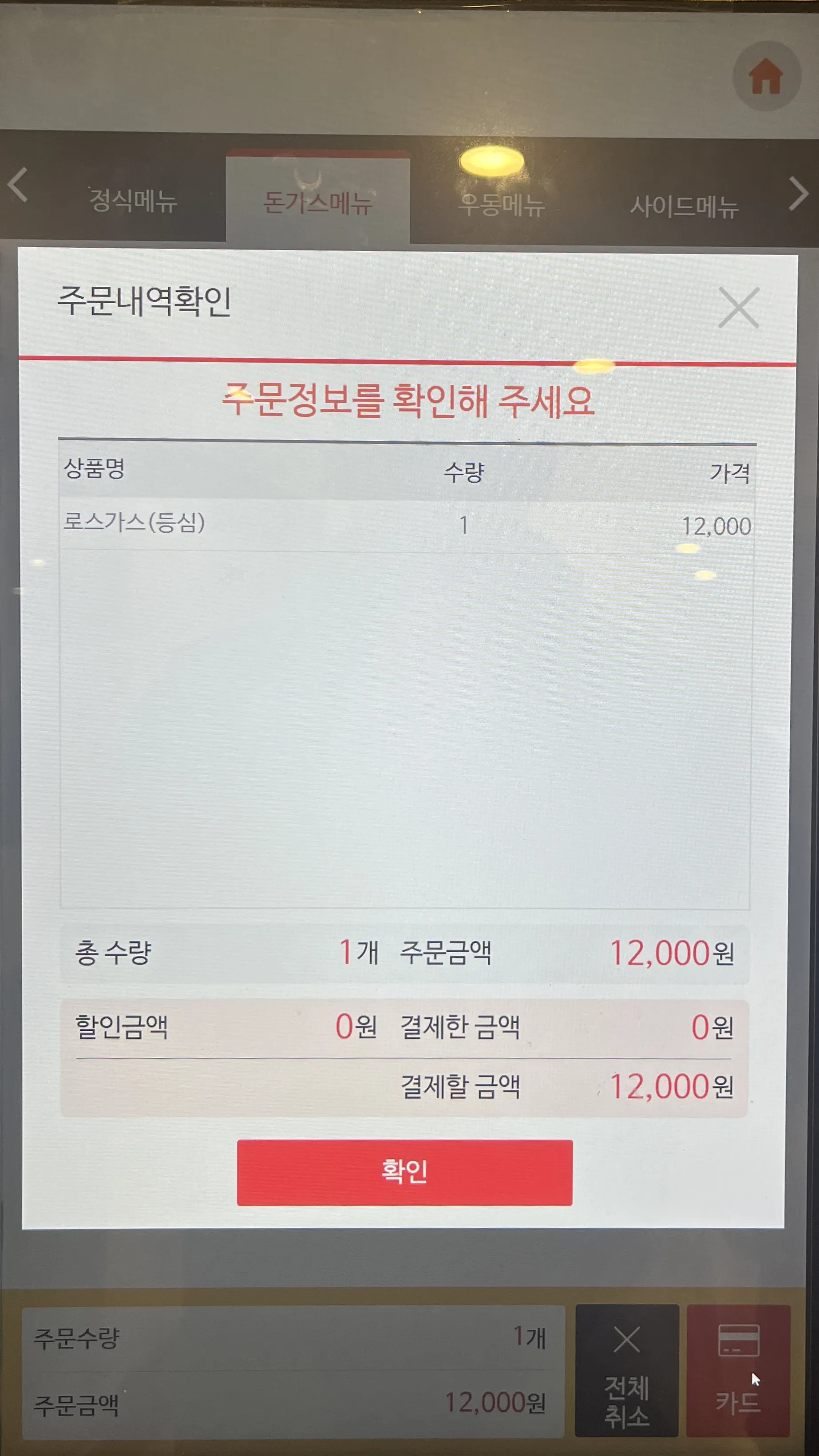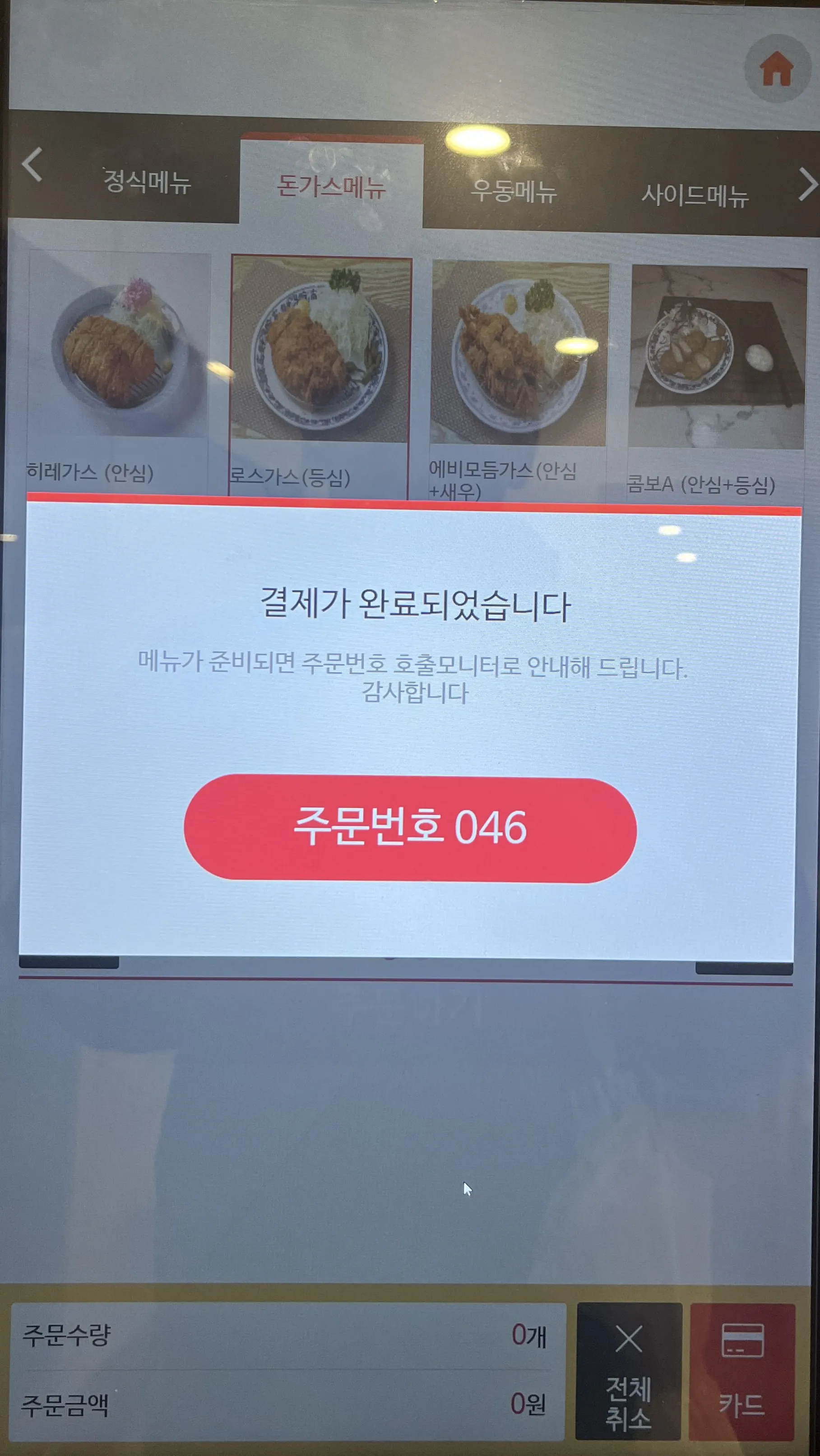 메뉴 선택 후, 카드로 결제하면 끝. 역시나 간단한 플로우로 누구나 사용하기 쉬울 것 같다는 생각이 들었다.
