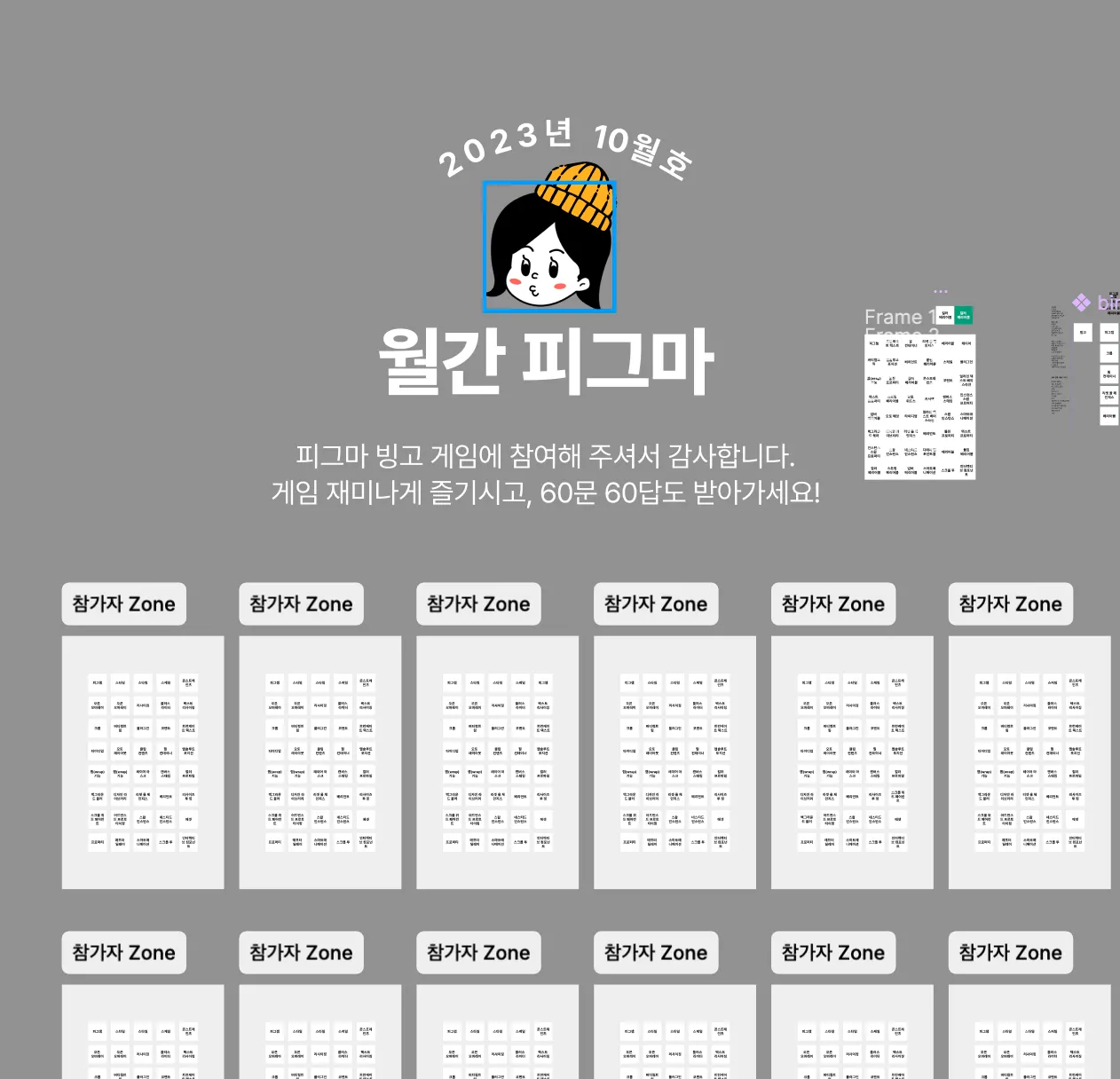 2023년 10월에는 피그마 기능들의 이름으로 빙고게임을 해보았습니다.
