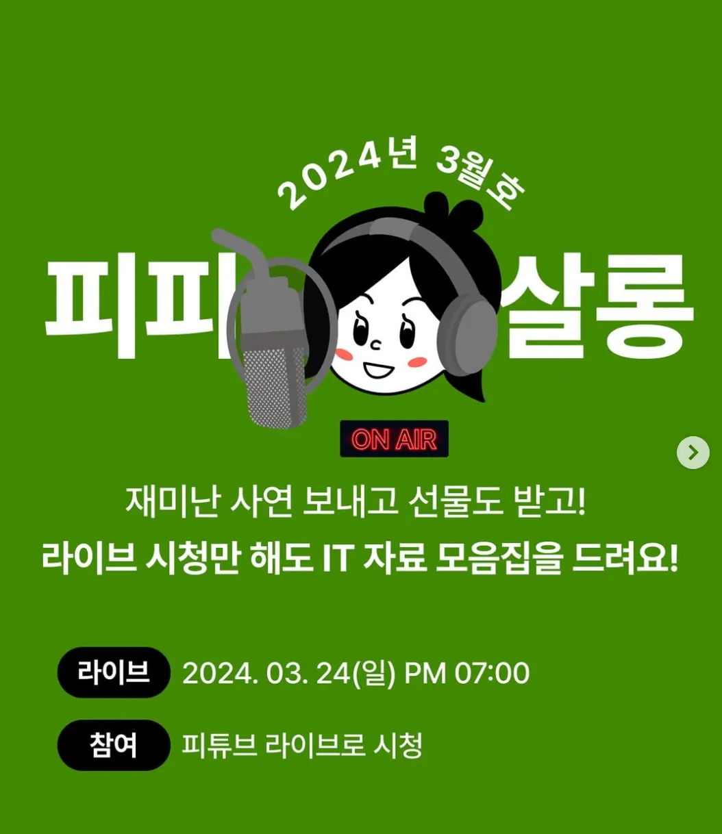 피피살롱에서는 IT 관련된 다양한 사연, 고민 그리고 재밌는 썰까지 미리 받아 피피팀이 소개하고 답변도 해주고, 또 실시간으로 듣는 분들이 함께 이야기 나누는 라디오 형식의 행사를 진행했습니다.