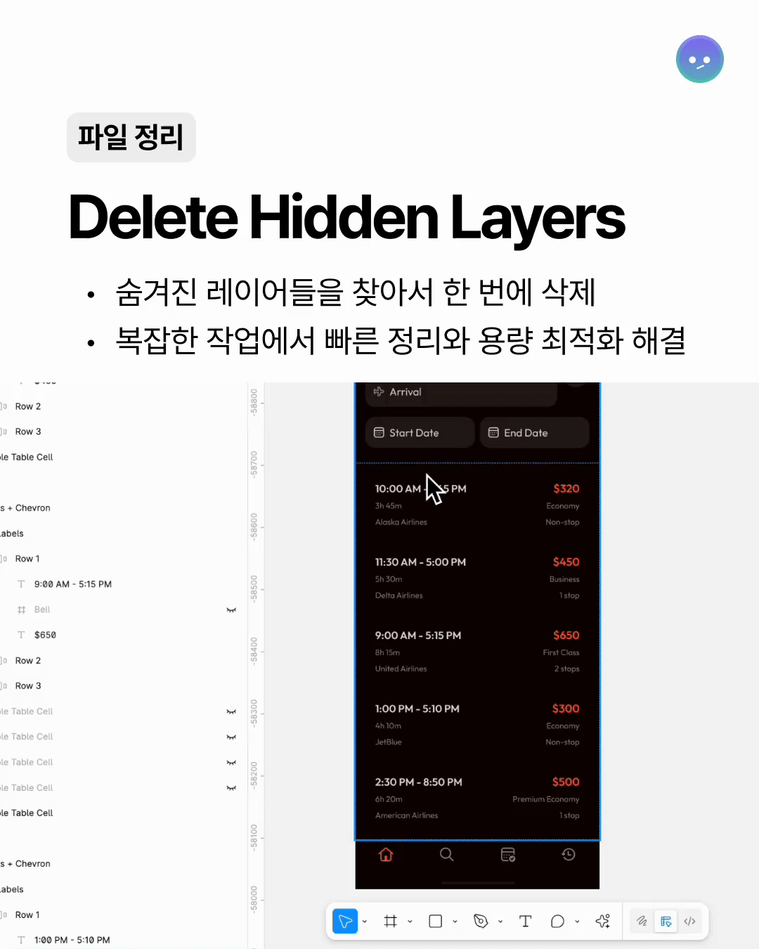 숨겨진 레이어들을 찾아서 한 번에 삭제