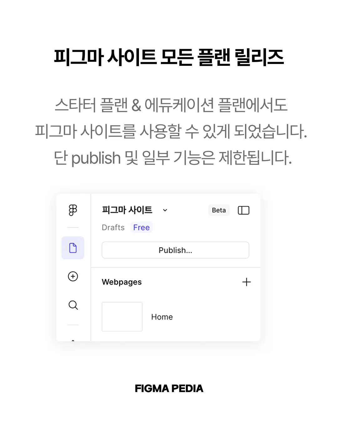 : 스타터 플랜 & 에듀케이션 플랜에서도 피그마 사이트를 사용할 수 있게 되었습니다. 단 publish 및 일부 기능은 제한됩니다.