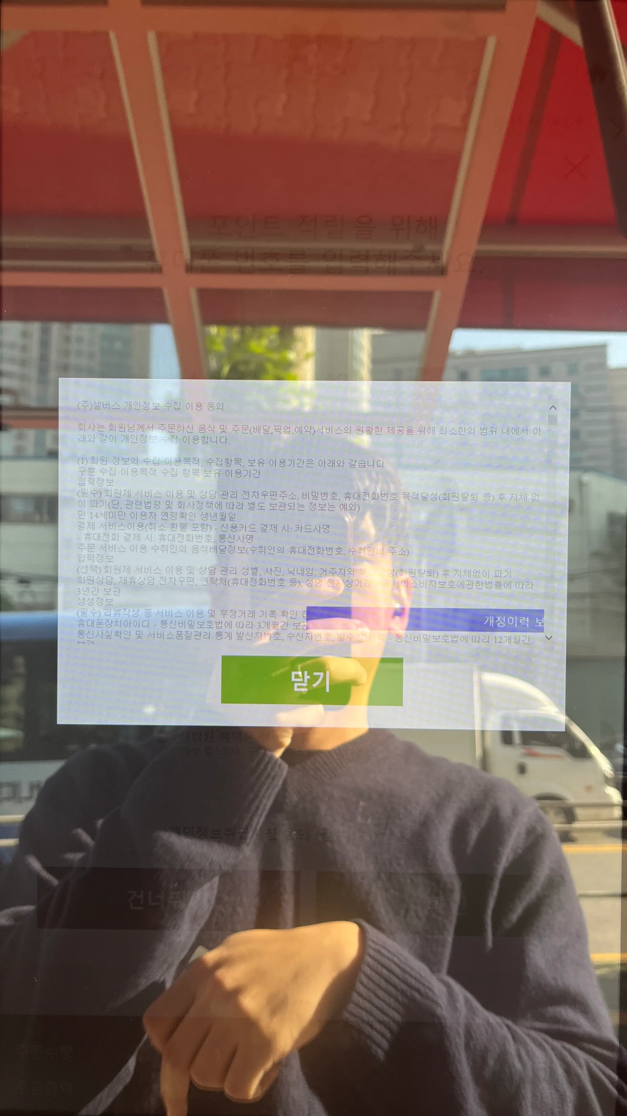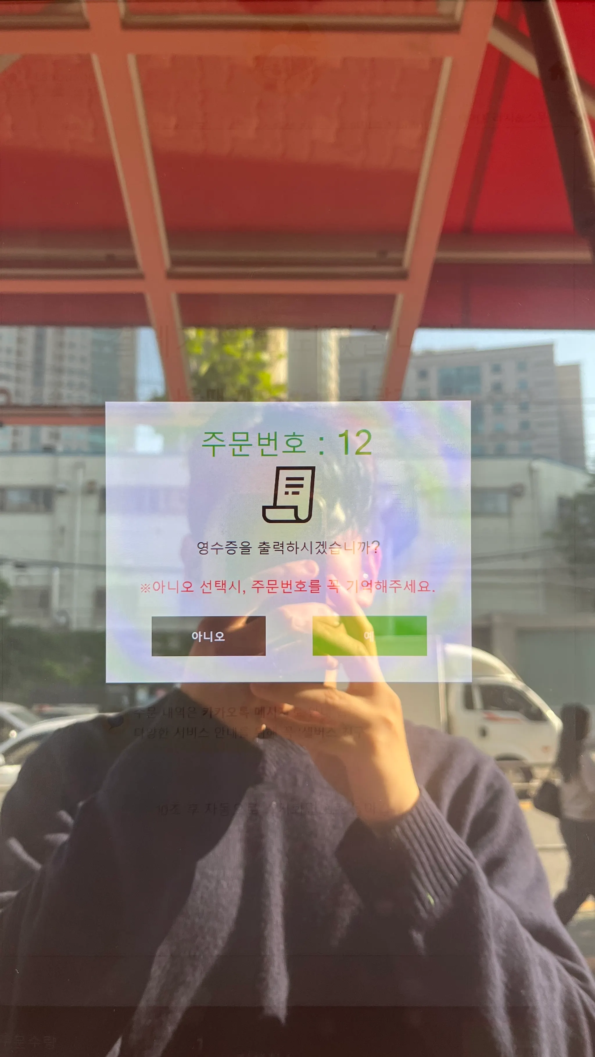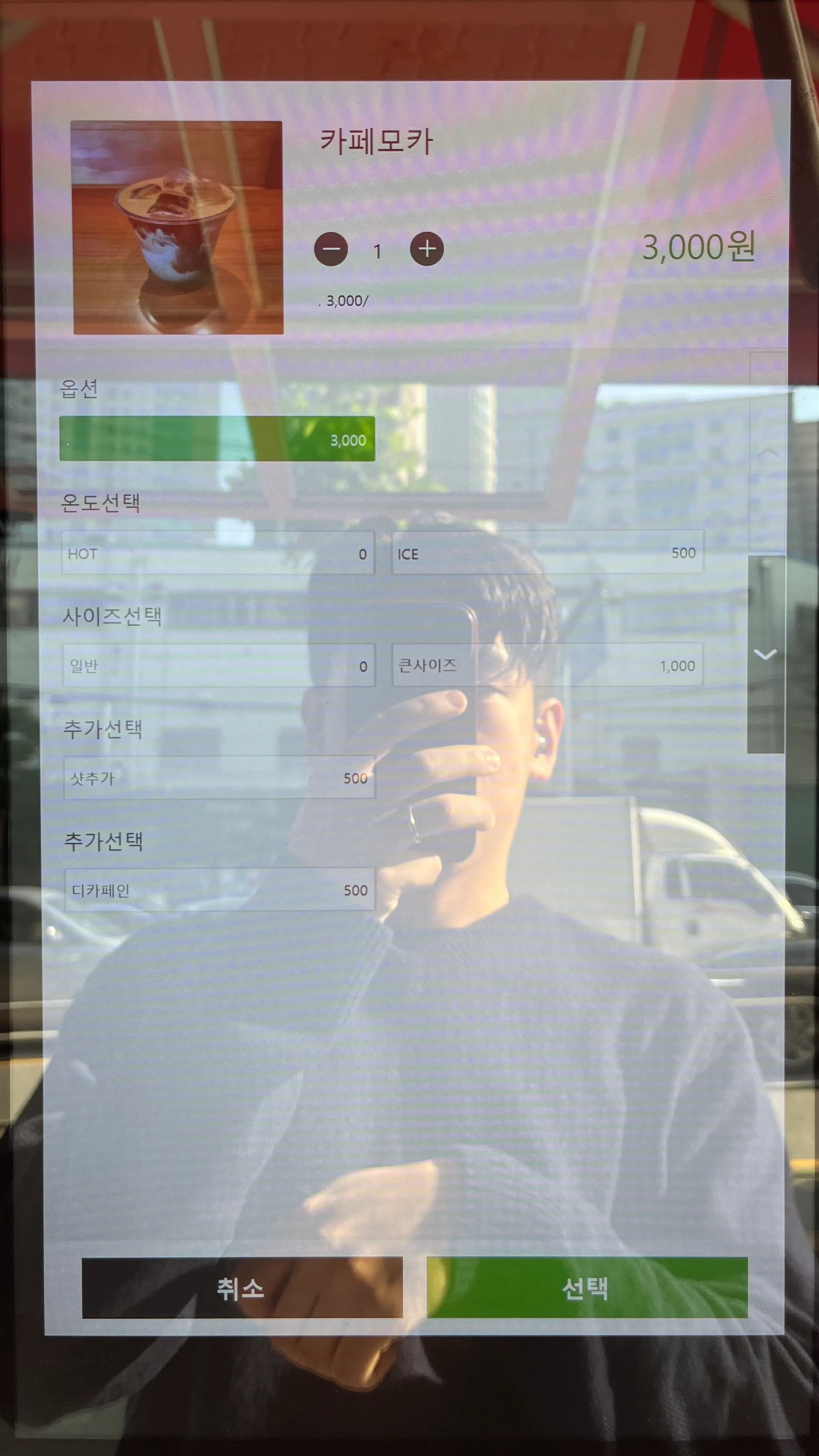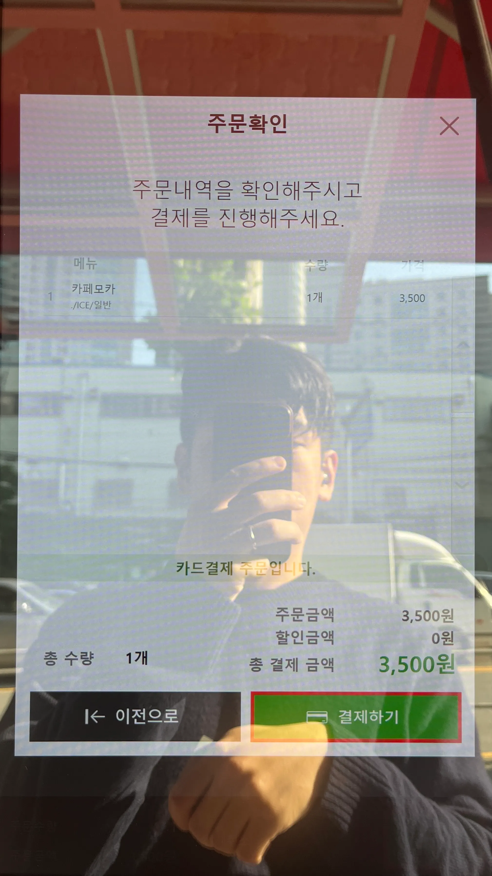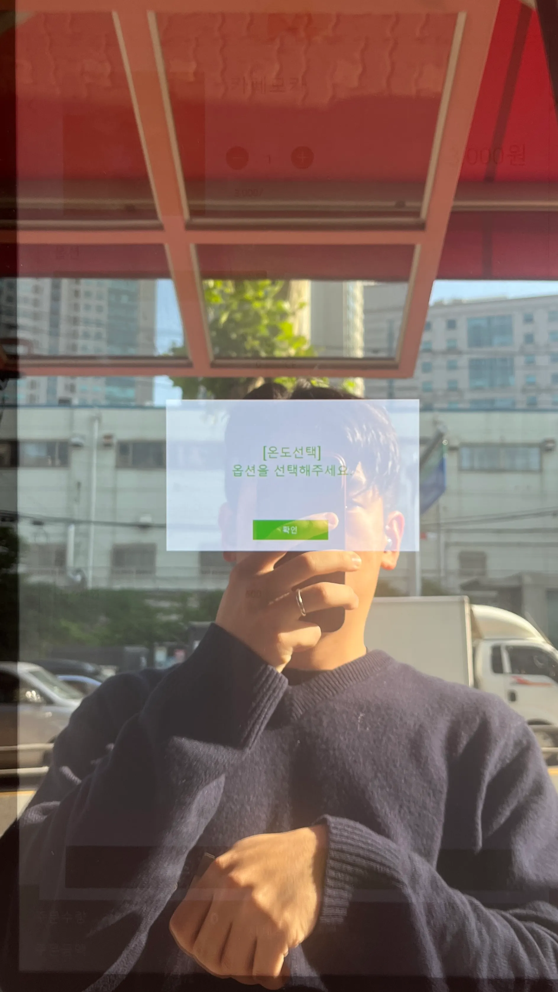 먼저 홈버튼, 뒤로가기 버튼 등의 주요 버튼이 위에 있는데 키오스크의 위치는 비교적 높아서 키가 작은 사용자라면 사용이 불편하지 않을까 싶었고 음료의 옵션을 선택해는 텍스트 크기가 작고 버튼 스타일이 어떤 옵션인지 한 눈에 알아보기 힘들어서 내가 이걸 선택해야만 다음화면으로 넘어갈 수 있는지 한번에 알아보기 힘들었다. 어떤 버튼인지 알아보기 쉽게 스타일을 바꿔주고 컵 사이즈 등 간단히 넘어갈 수 있는 부분은 한쪽이 선택되어진 상태로 노출되면 더 사용성이 좋지않았을까 싶다!