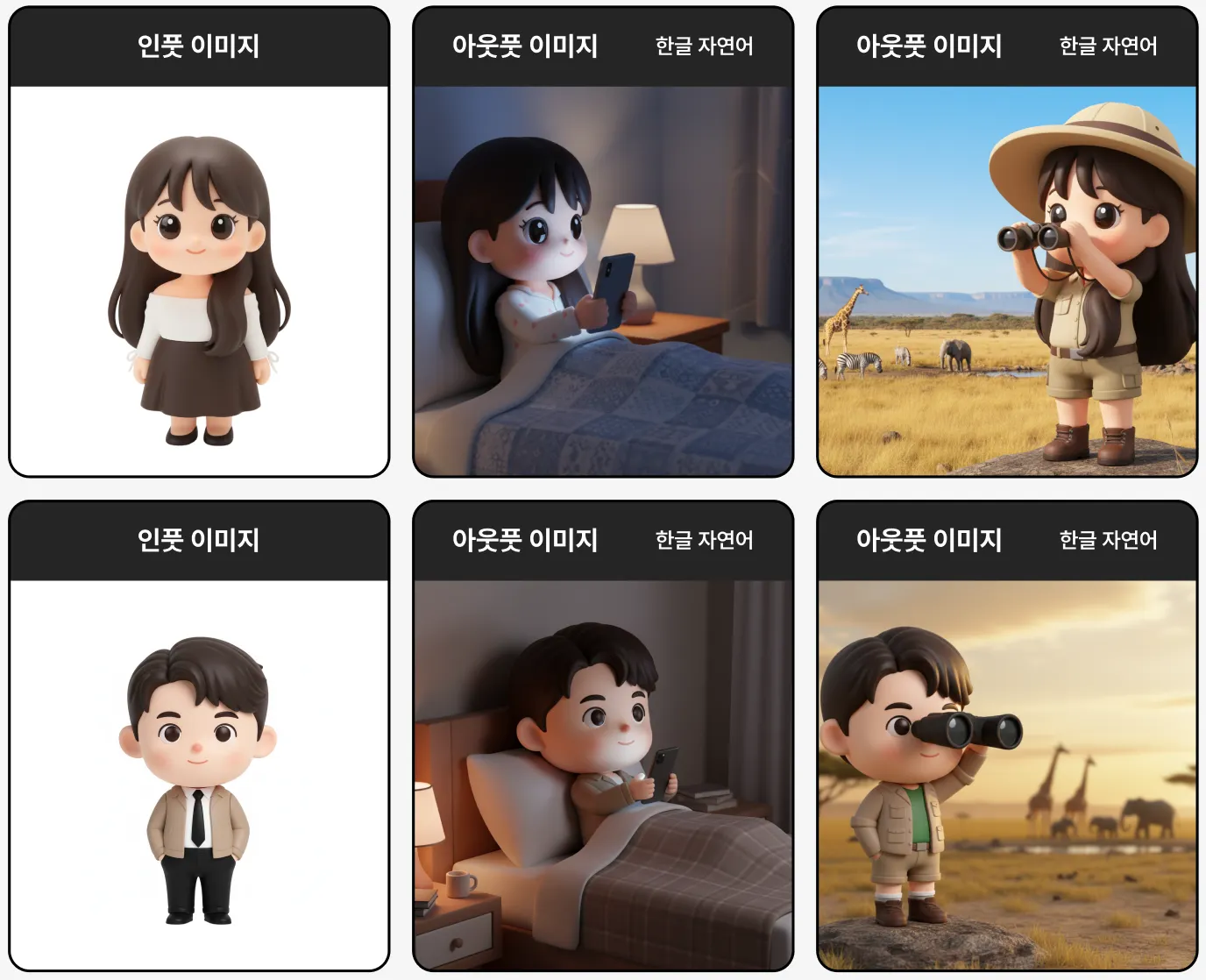 + 인풋 이미지와 함께 참조할 3D 스타일의 캐릭터를 함께 첨부해 주세요.