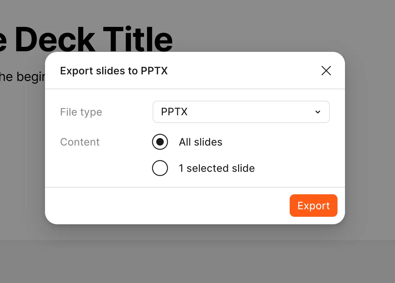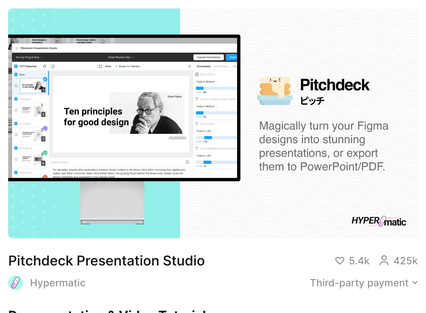 Pitchdeck 플러그인을 사용해서 pptx로 내보내기 합니다.