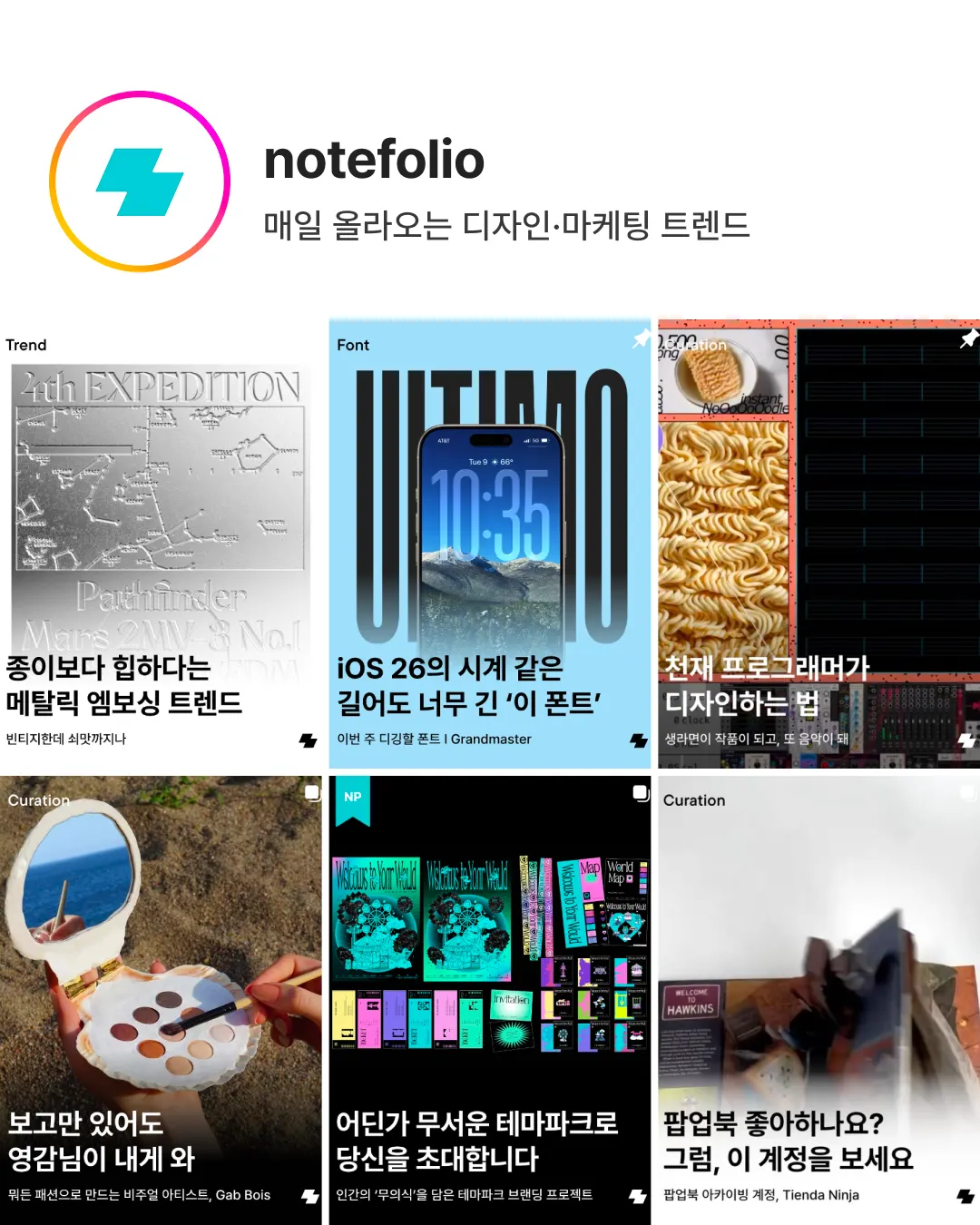 ✓ 매일 업데이트되는 디자인·마케팅 트렌드 ✓ 폰트, 브랜딩, 캠페인 영감을 한눈에