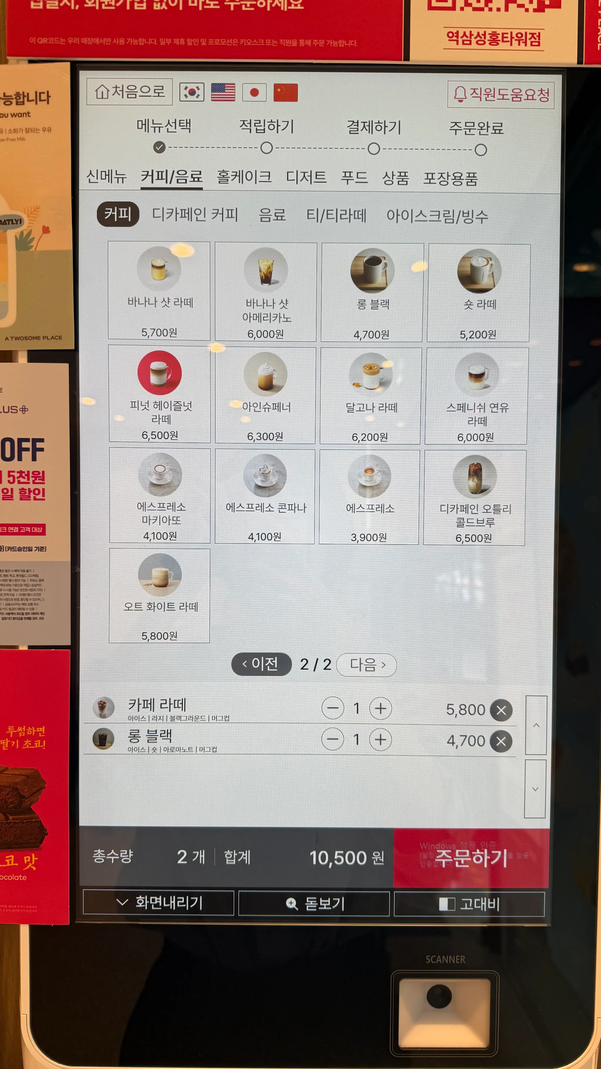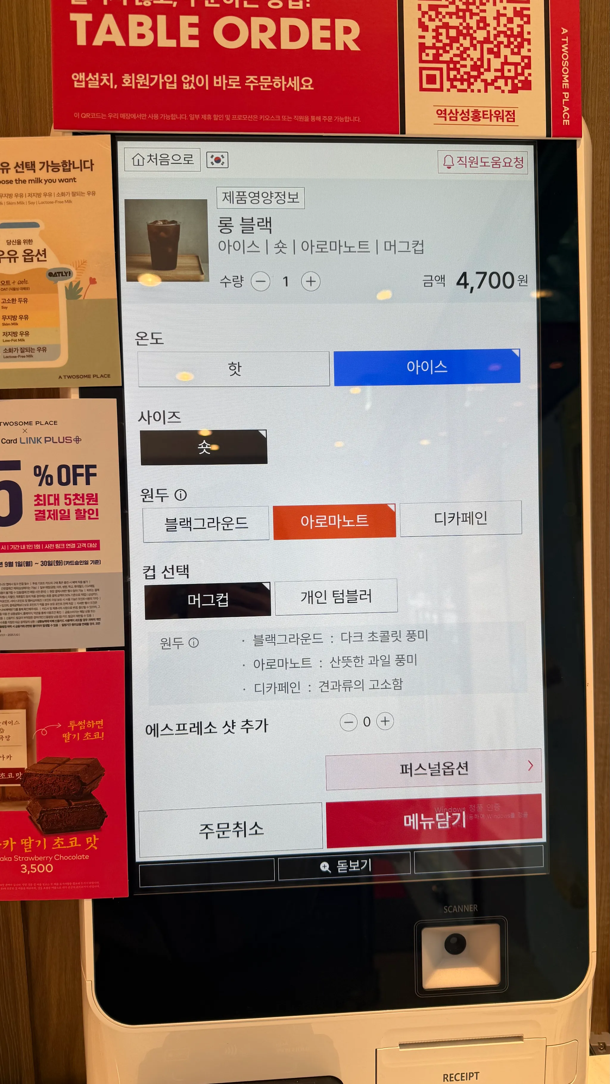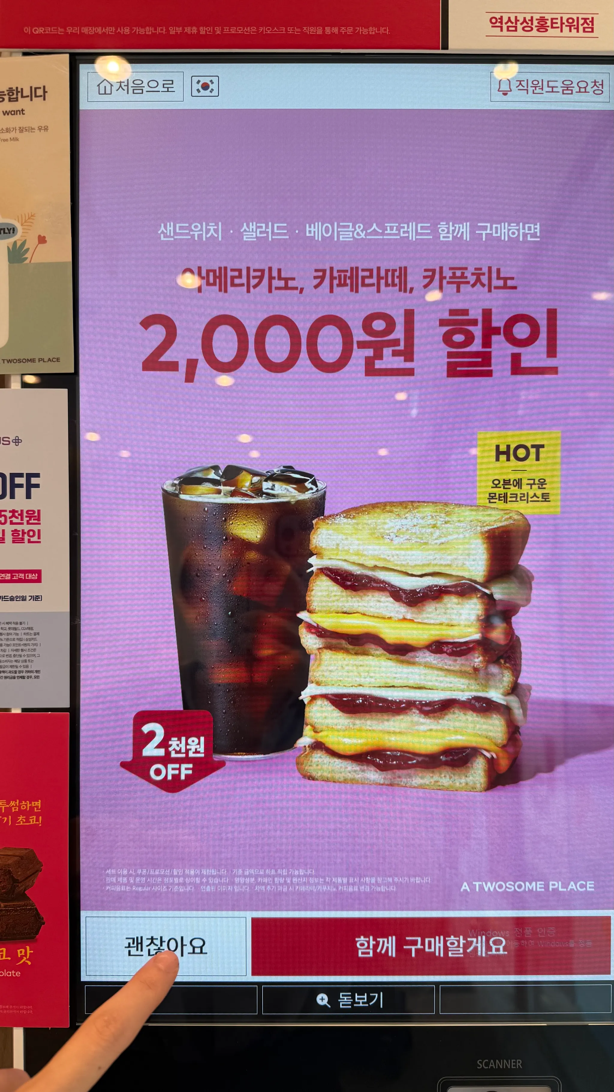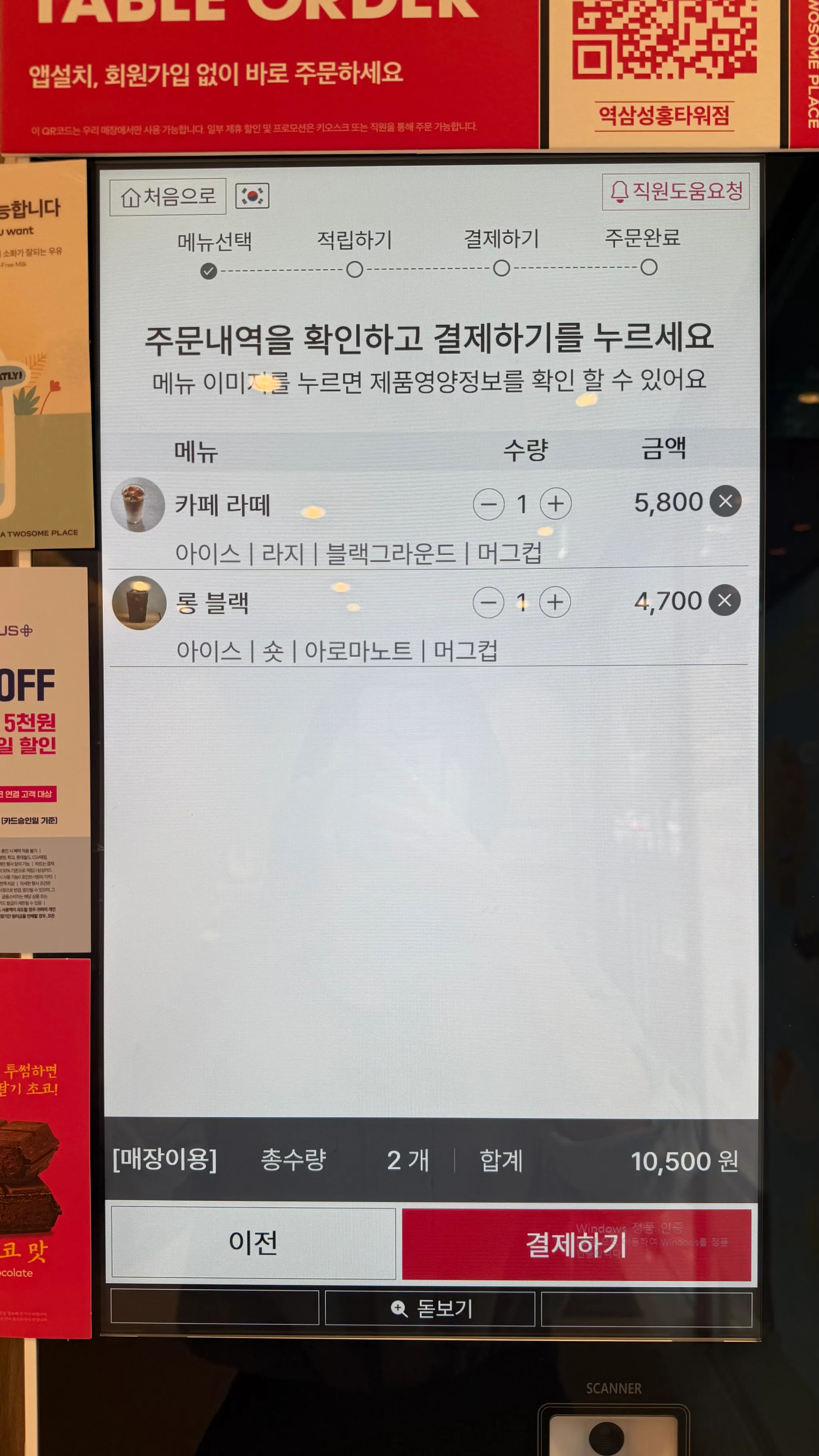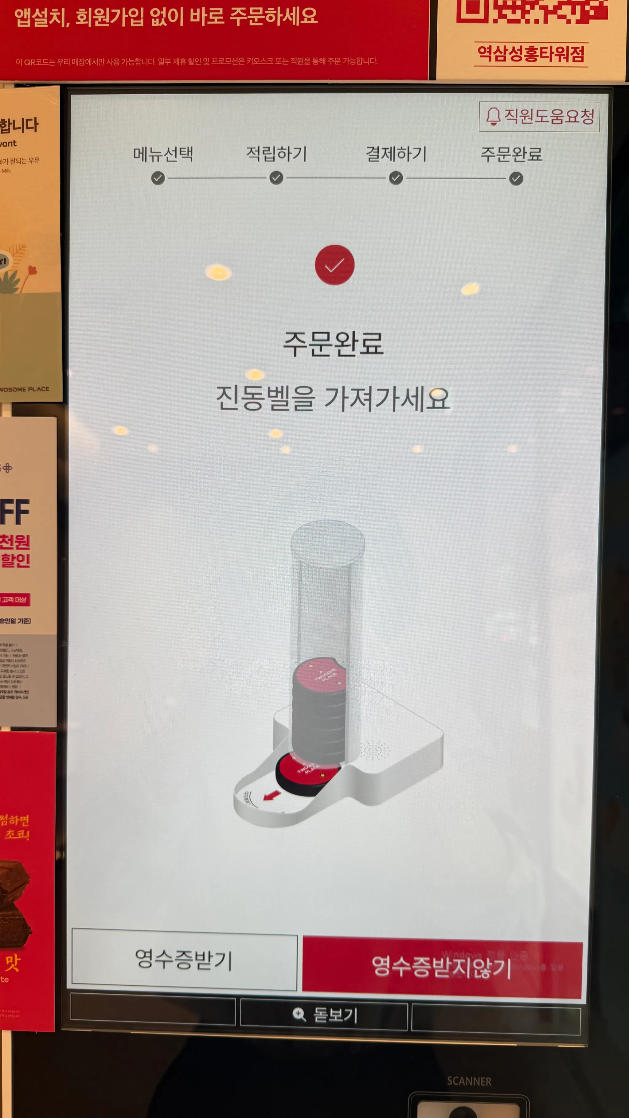 키오스크와 별개로 사이드에 붙어진 혜택 이미지때문에 집중이 분산되는 느낌