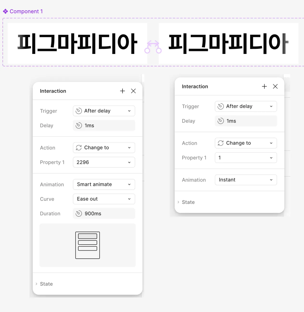 1번 프레임 > 2번 프레임 (에프터딜레이/ 스마트 애니메이트)