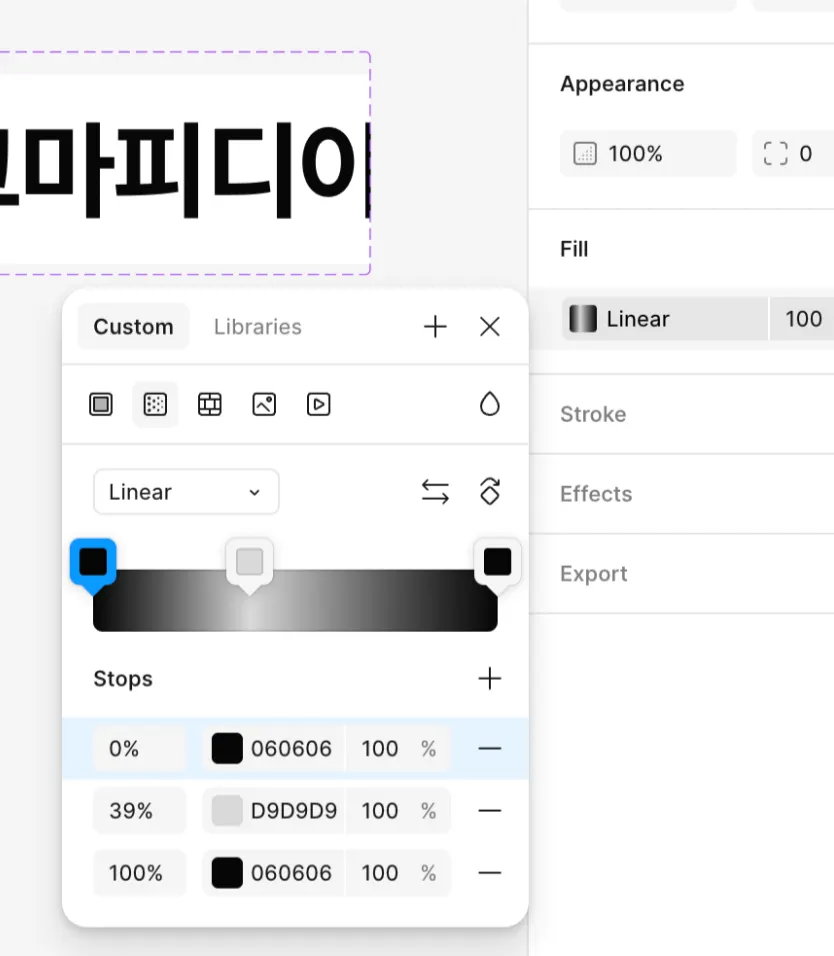 텍스트 마스크 씌운 후, Linear 값 주기