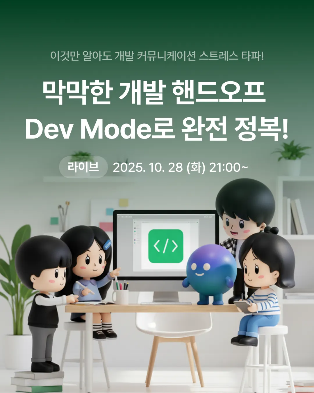 라이브 주제는 [피그마 Dev mode 파헤치기] 입니다. 디자이너 뿐만 아니라 개발자 분들이 들어도 좋을 만한 내용도 많이 있답니다!