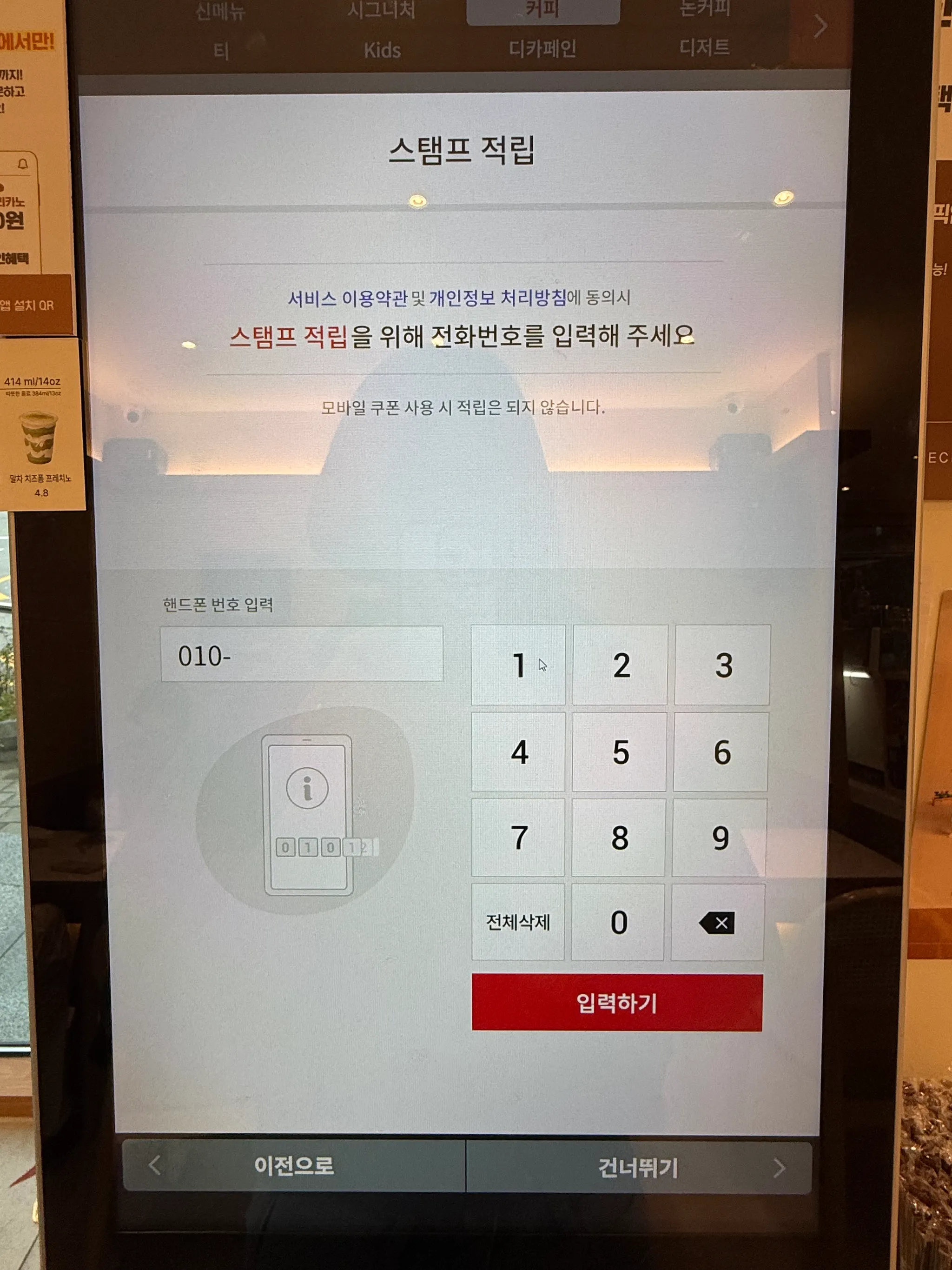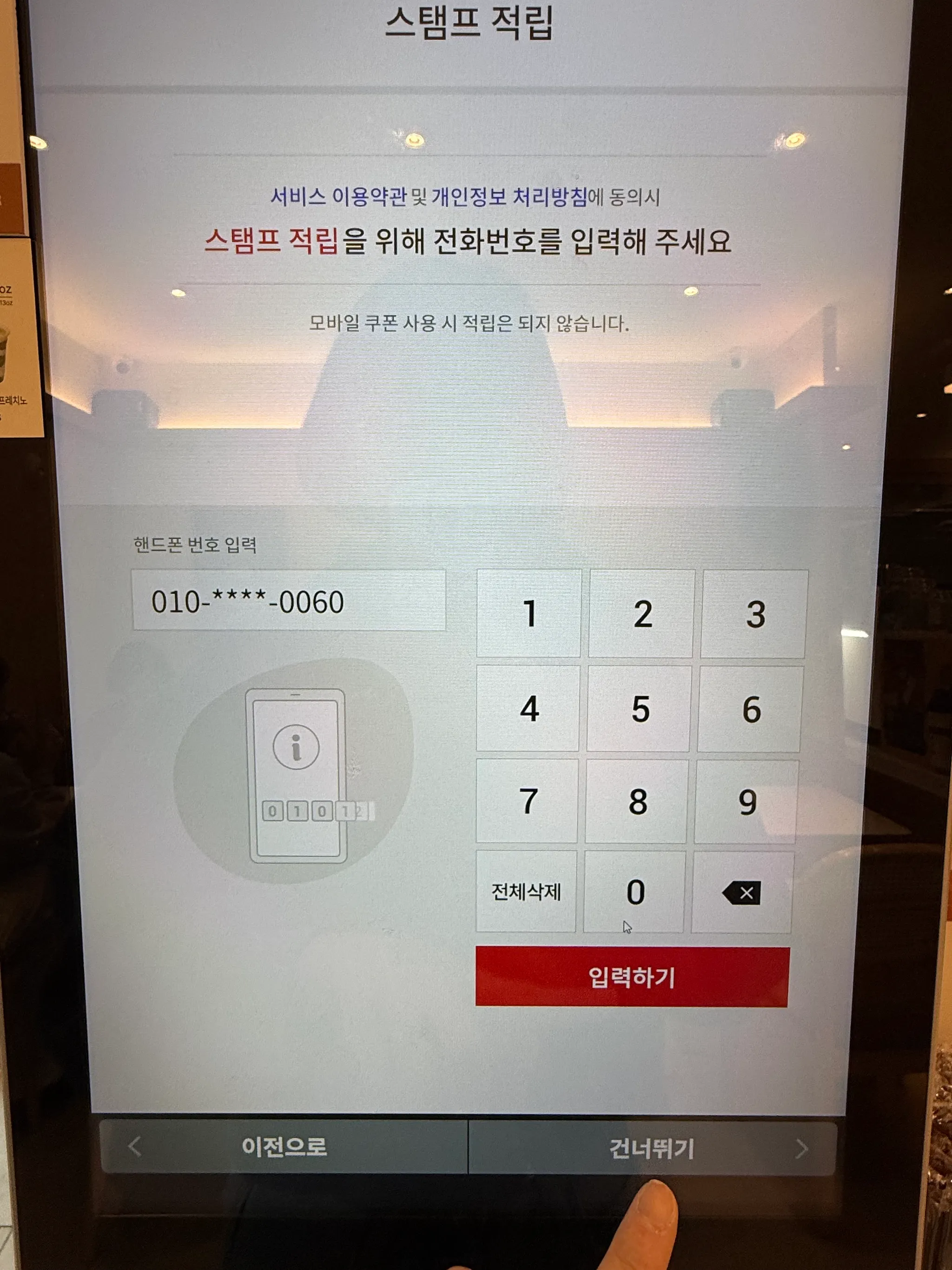 스탬프 적립 입력 UX - 전화번호 입력 시 하이픈(-) 자동 삽입이나 형식 가이드가 부족