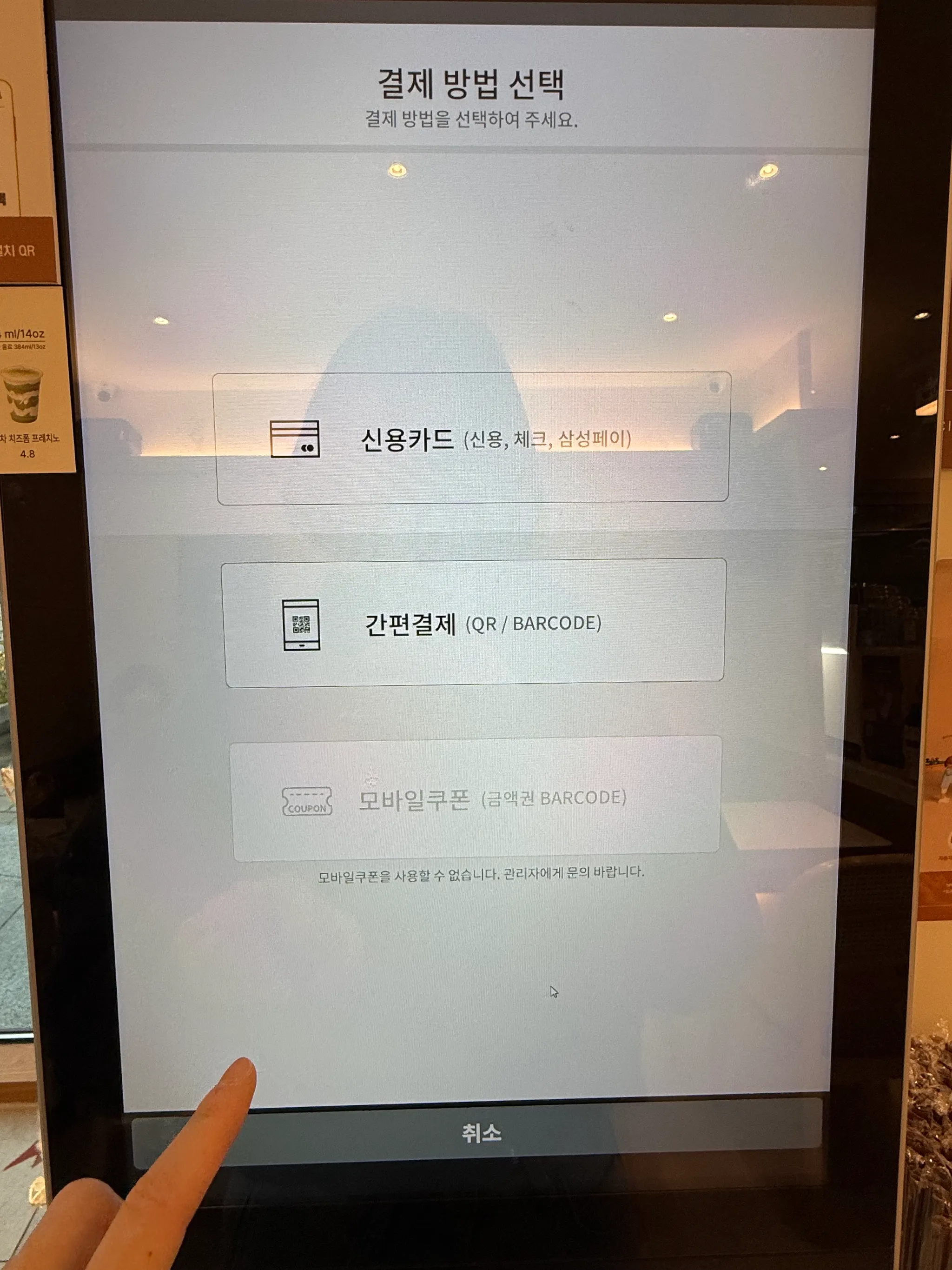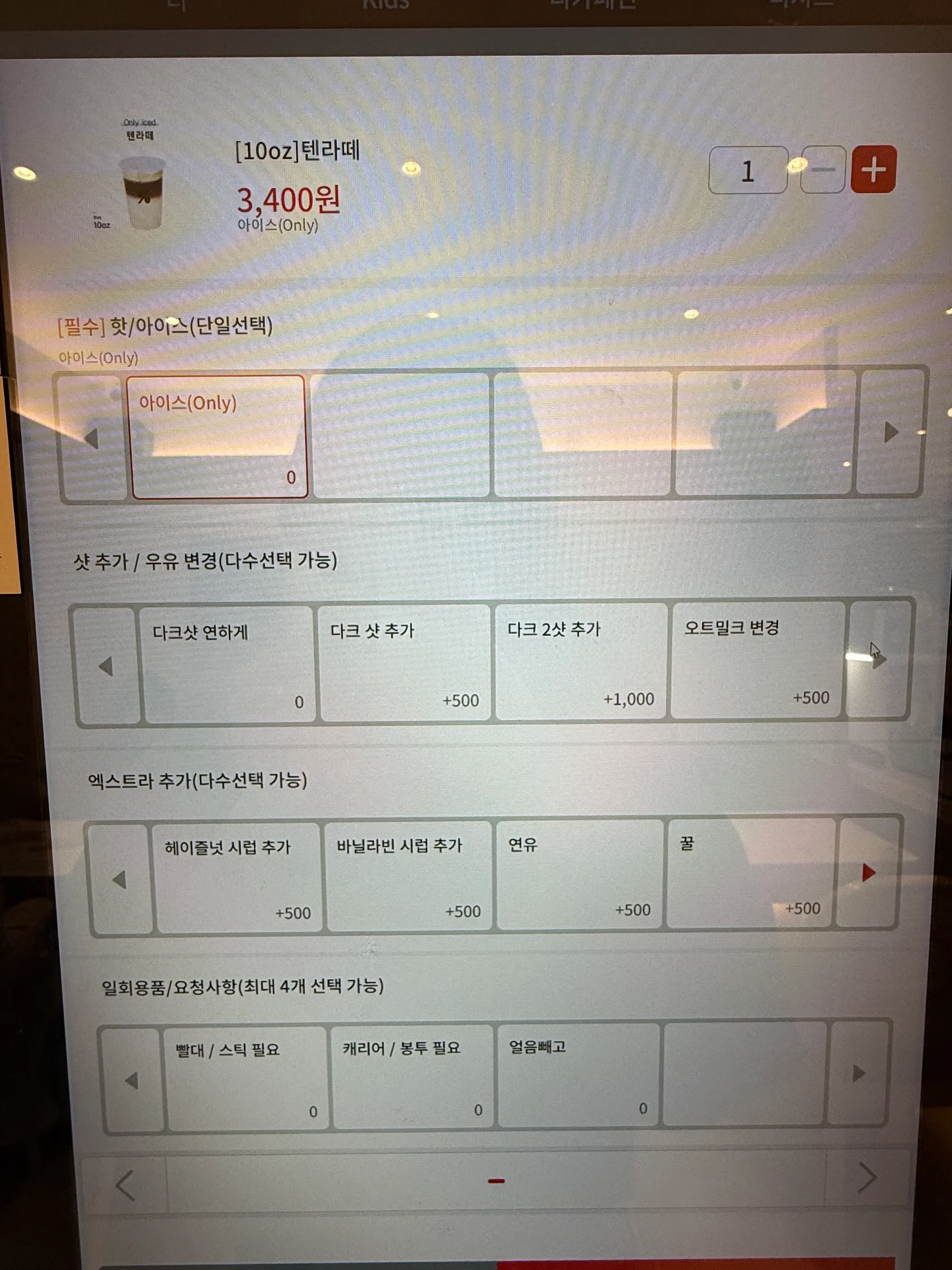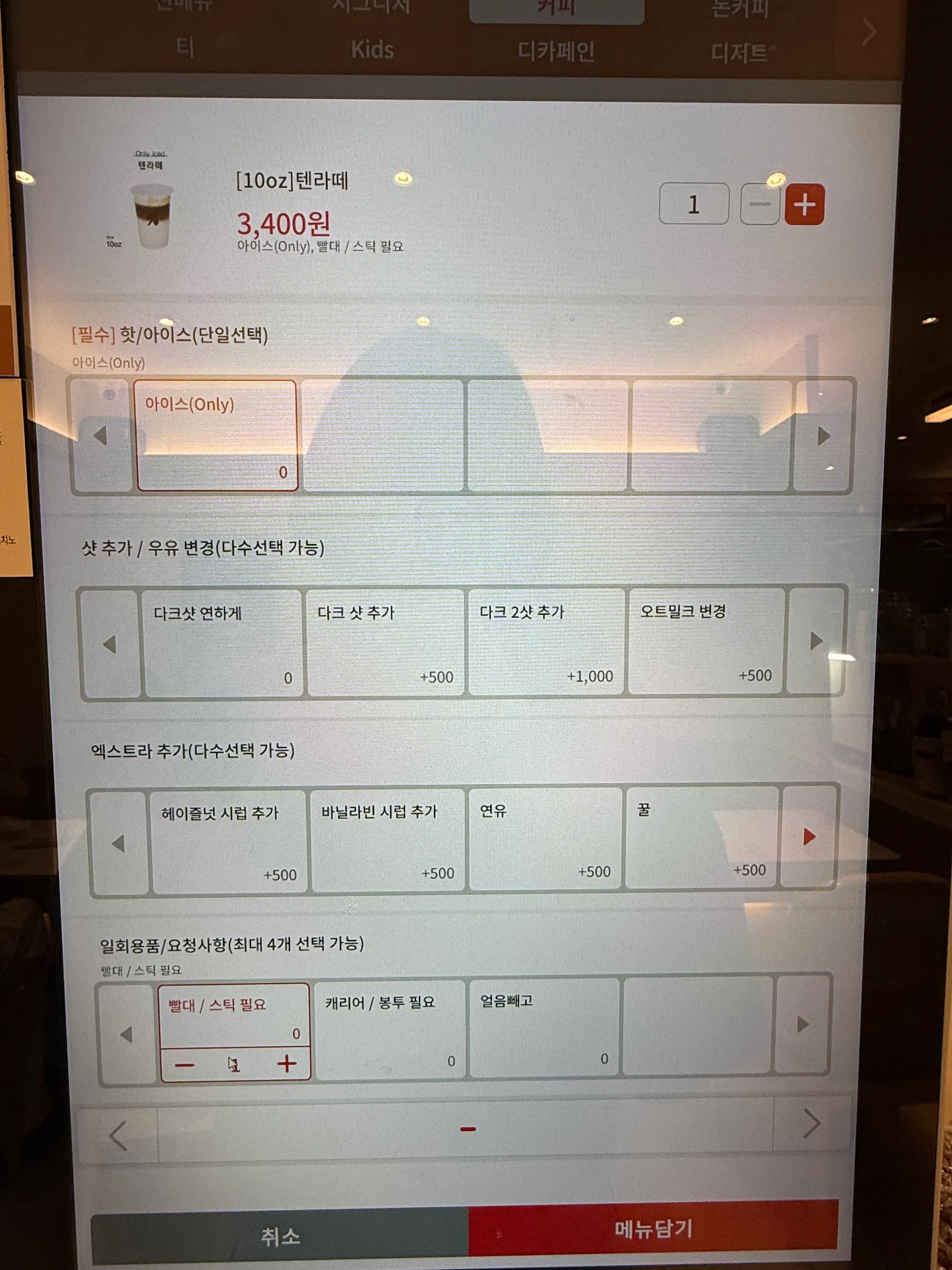 옵션 선택 단계가 과도 - 음료 하나 주문하는데 4-5개 화면을 거쳐야 해서 피로감이 느껴짐