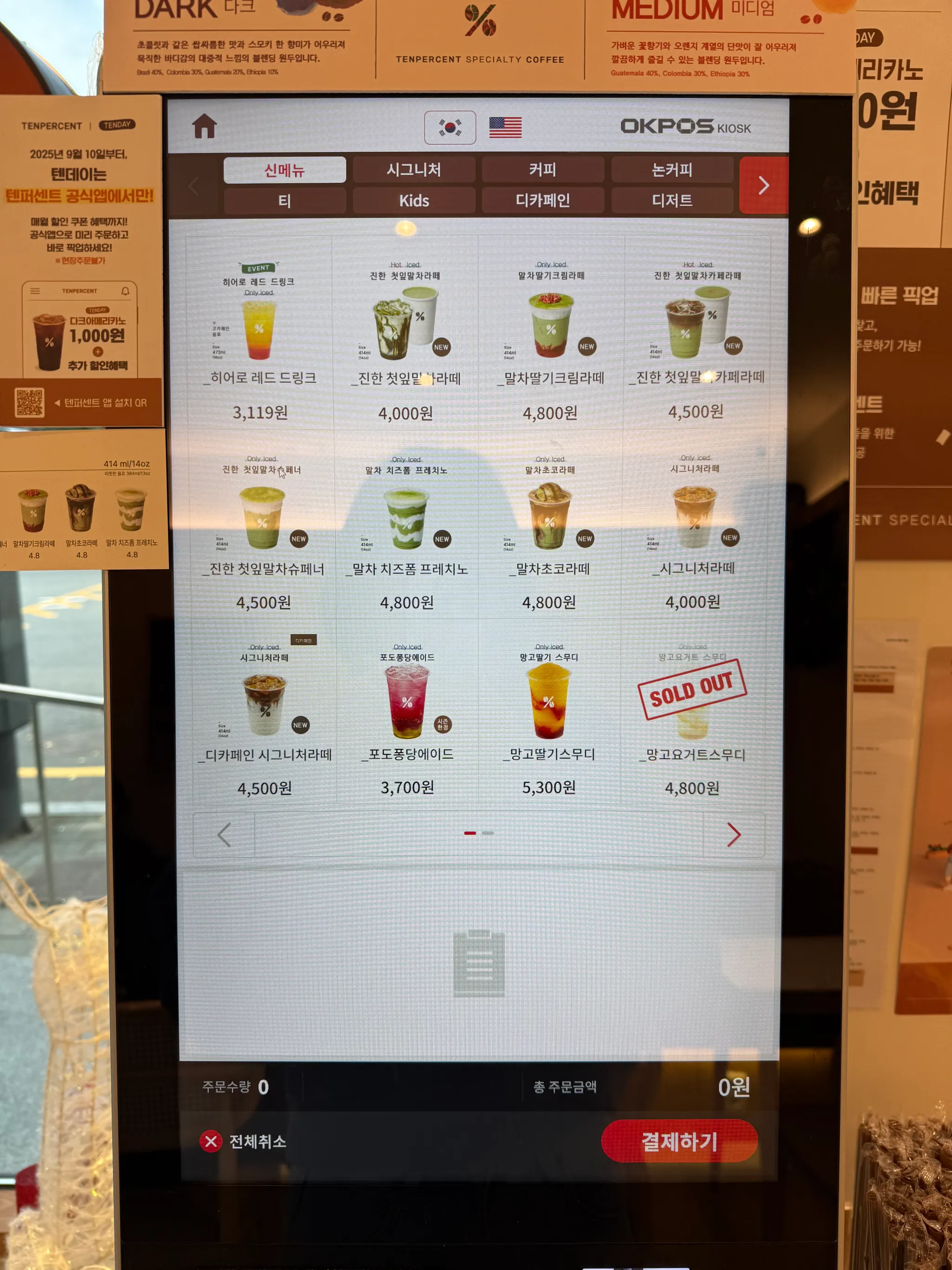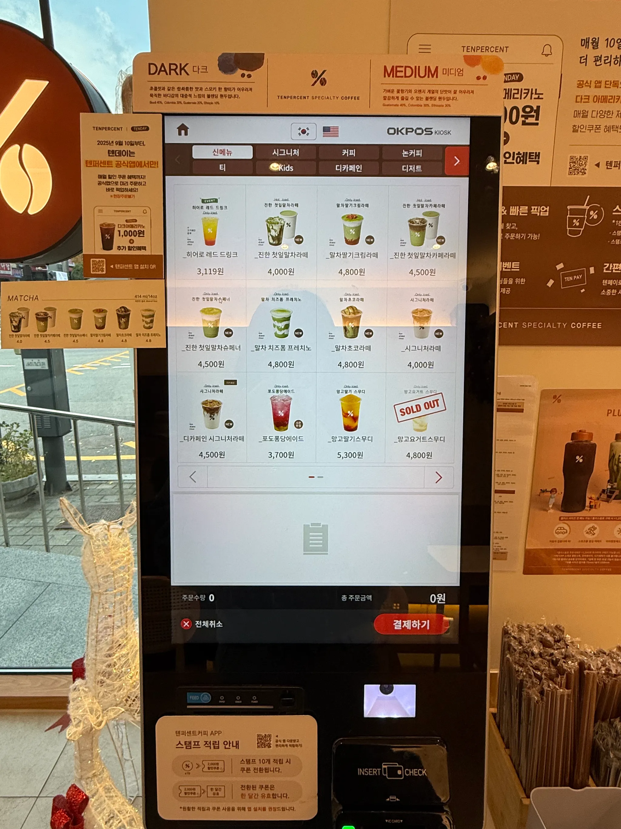 오늘은 텐퍼센트 커피 키오스크 수집해왔어요!