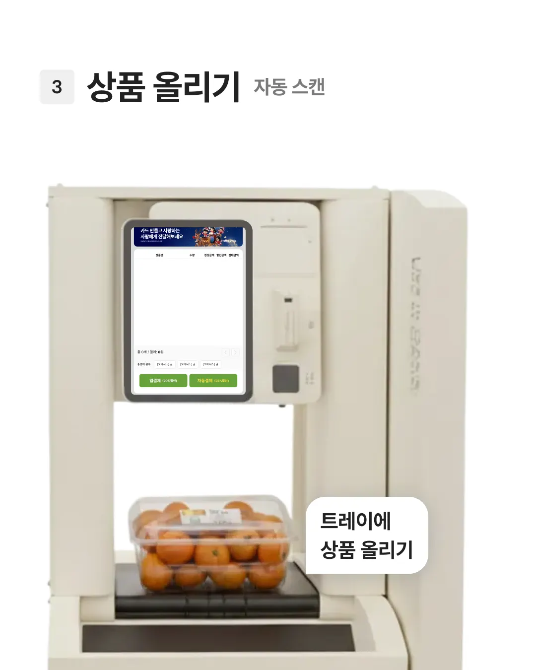 바코드를 찍을 필요없이 그냥 트레이에 올리면 스캔이 되어서 편리하다.️