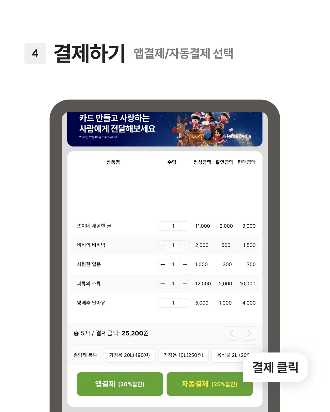 결제 시작 시 카드결제or자동결제를 누르면 시작되는줄 알았는데 자동결제는 QR을 찍어야만 진행됐다. 오류인줄 알고 계속 버튼을 눌렀는데 토스트만 띄워줬어도..
