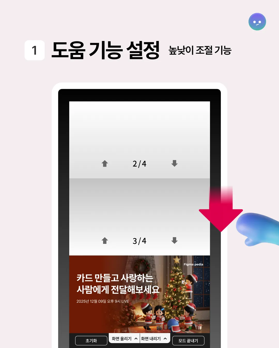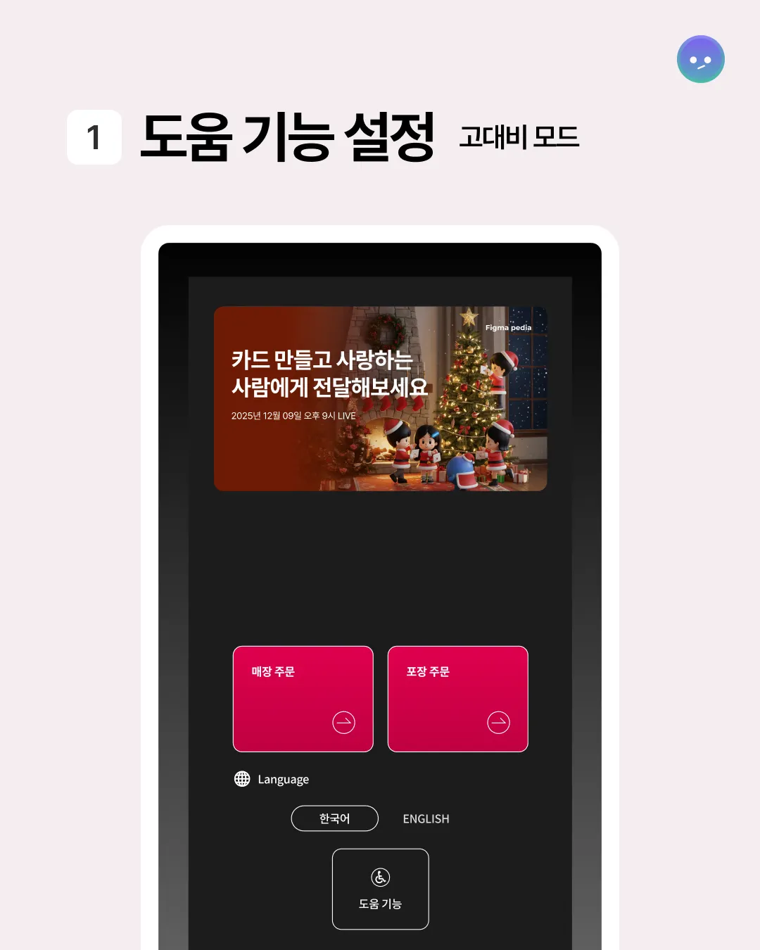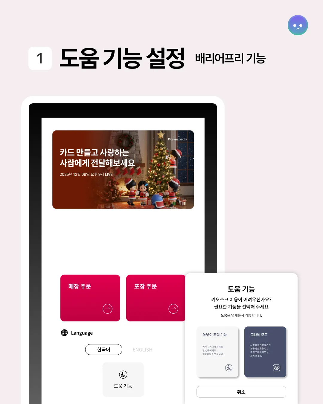 모든 화면에 도움 기능 모드 설정이 가능해 디지털 약자를 위한 포괄적인 UX를 제공하고 있다.