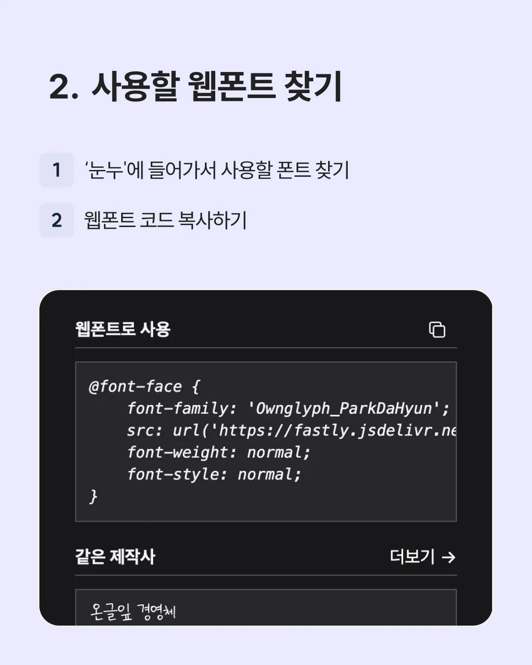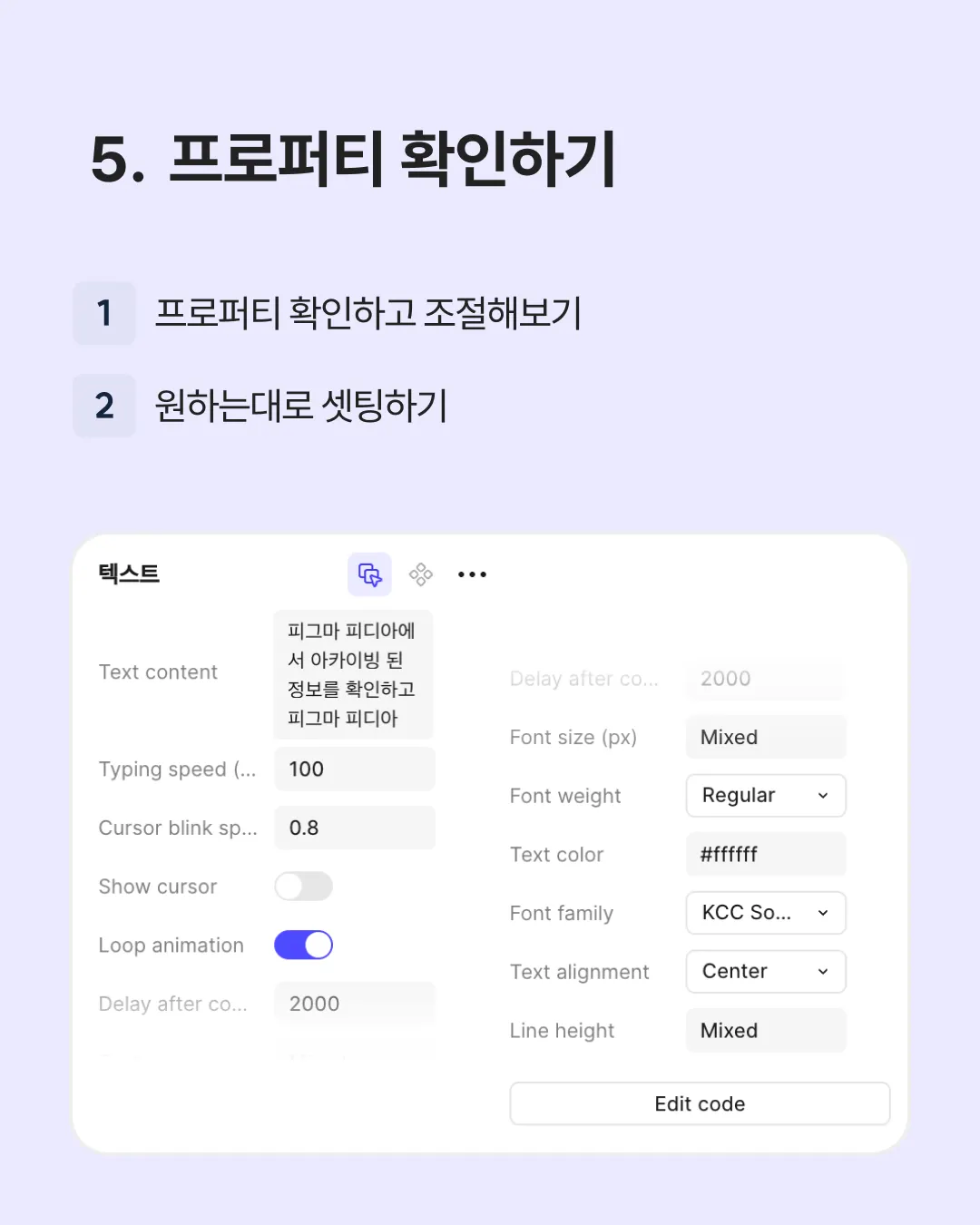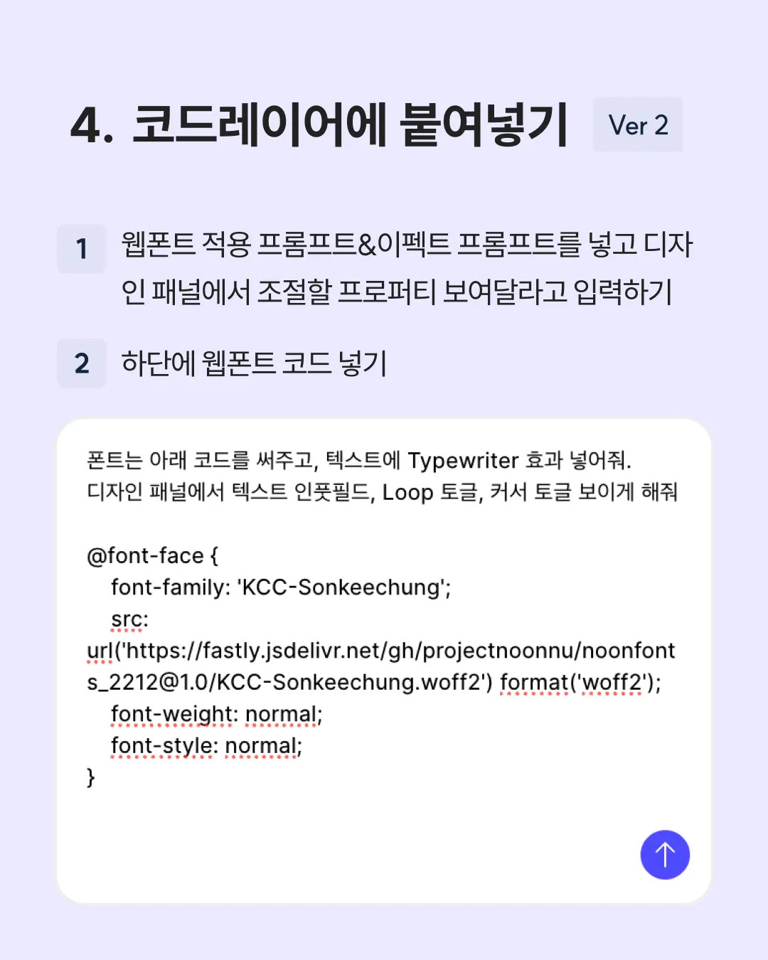 이렇게 코드 레이어를 활용하면 사이트에서도 충분히 커스텀 폰트를 손쉽게 적용할 수 있고, 동시에 이펙트까지 적용해 볼 수 있어요.