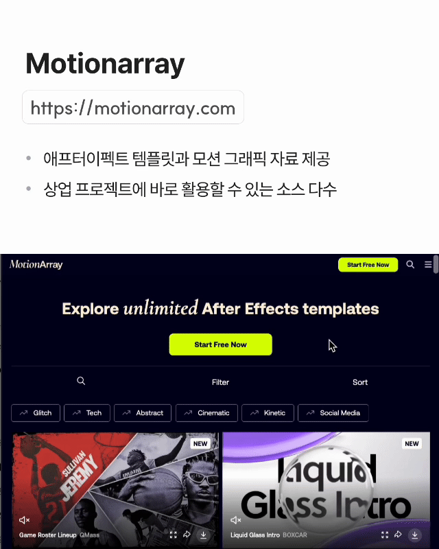 ✓ 애프터이펙트 템플릿과 모션 그래픽 자료 제공 ✓ 상업 프로젝트에 바로 활용할 수 있는 소스 다수