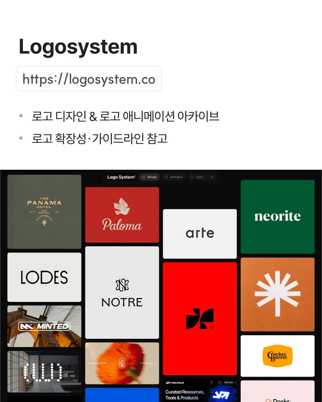 ✓ 로고 디자인 & 로고 애니메이션 아카이브 ✓ 로고 확장성·가이드라인 참고
