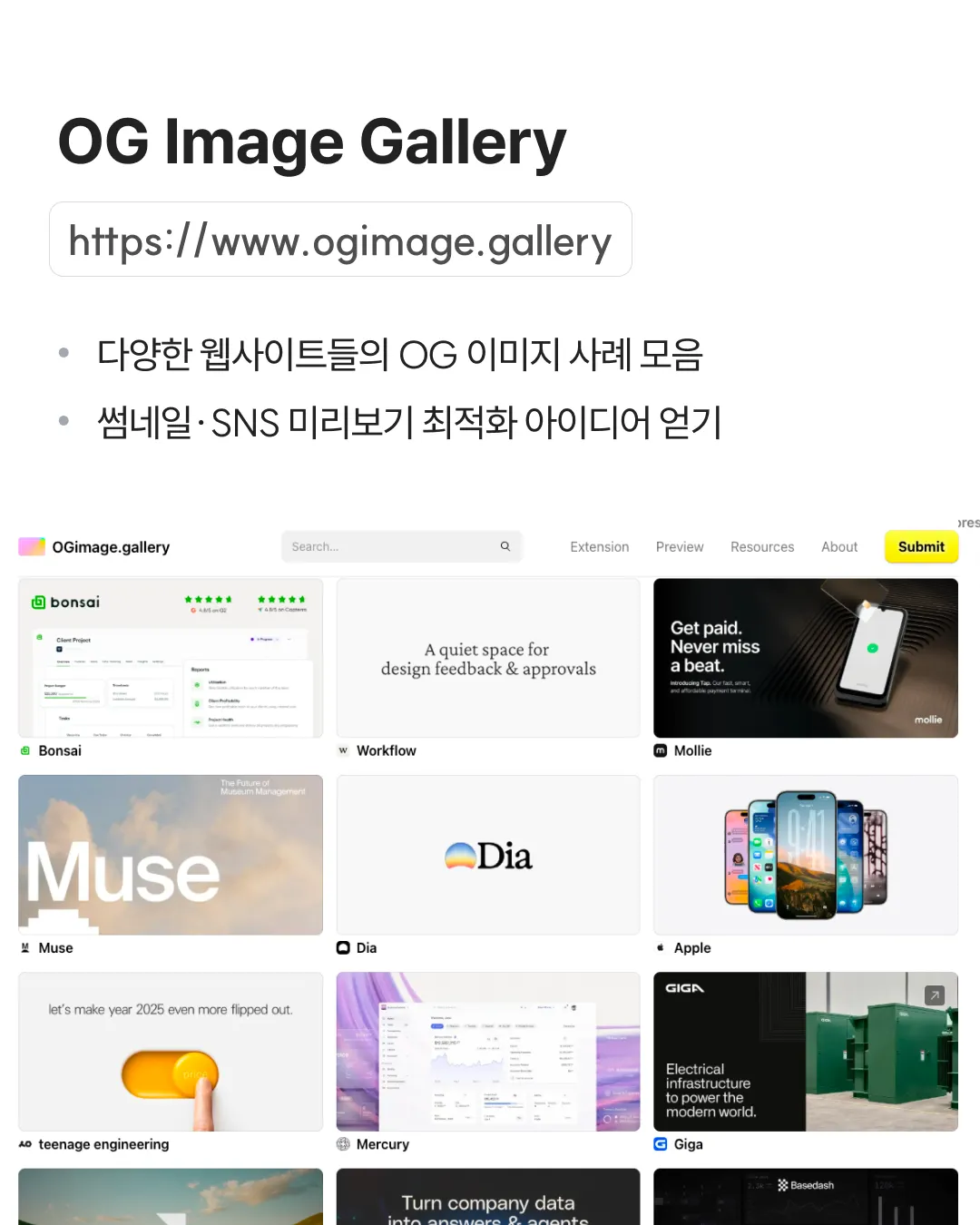 ✓ 다양한 웹사이트들의 OG 이미지 사례 모음 ✓ 썸네일·SNS 미리보기 최적화 아이디어 얻기