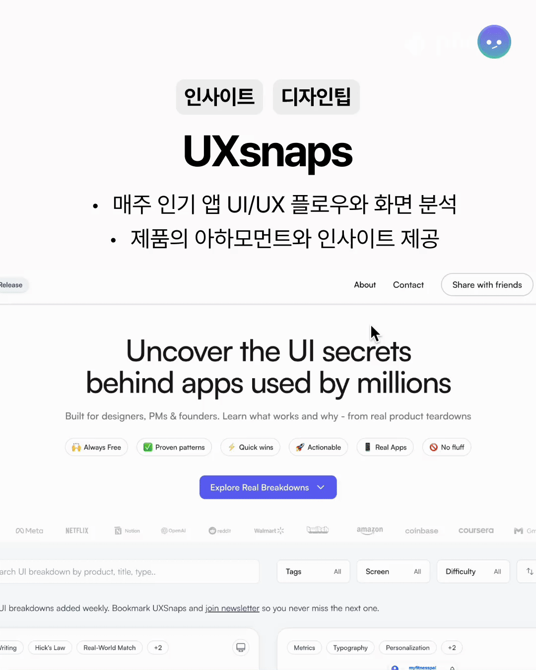 매주 인기 앱 UI/UX 플로우와 화면 분석