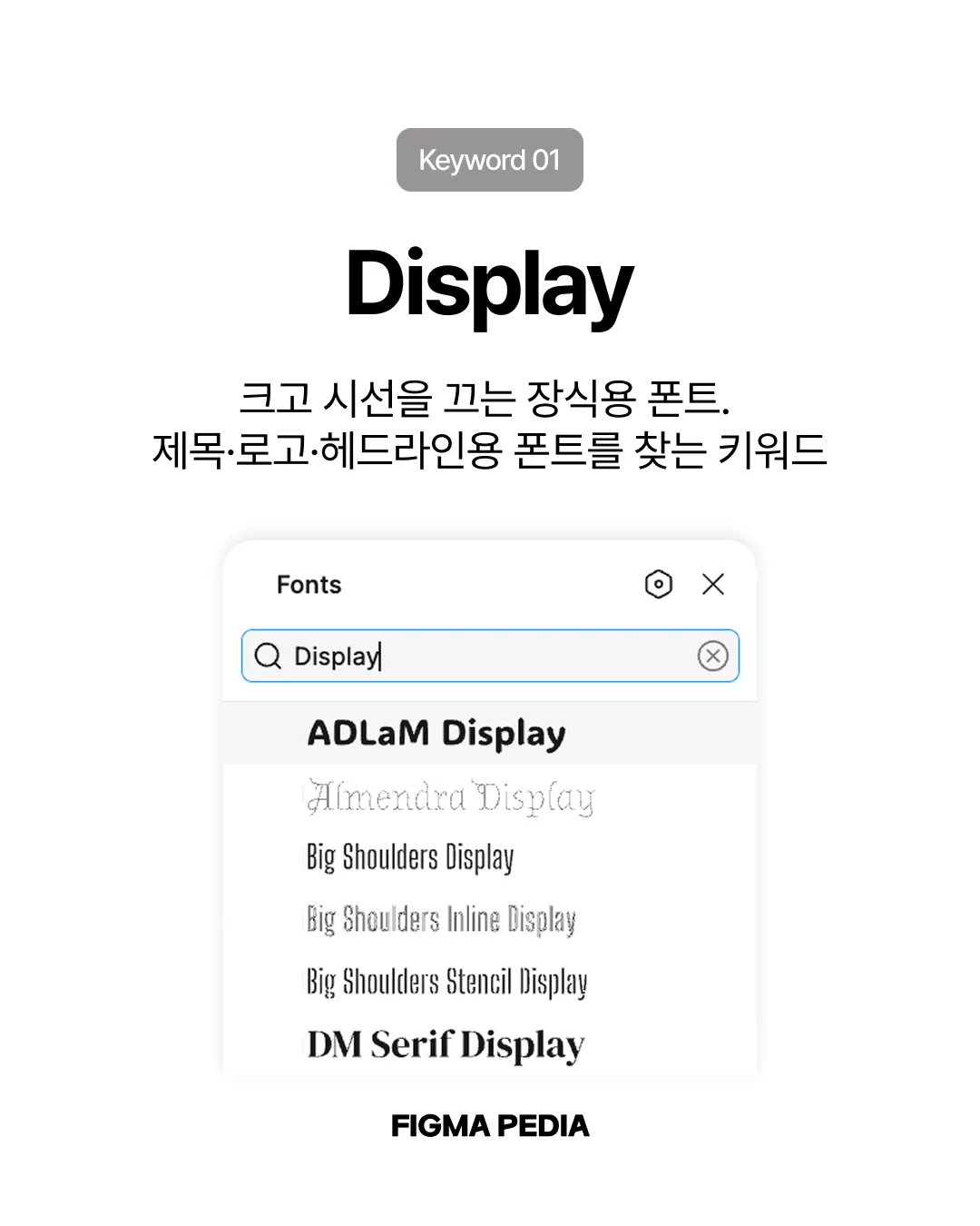 Display : 크고 시선을 끄는 장식용 폰트. 제목·로고·헤드라인용 폰트를 찾는 키워드