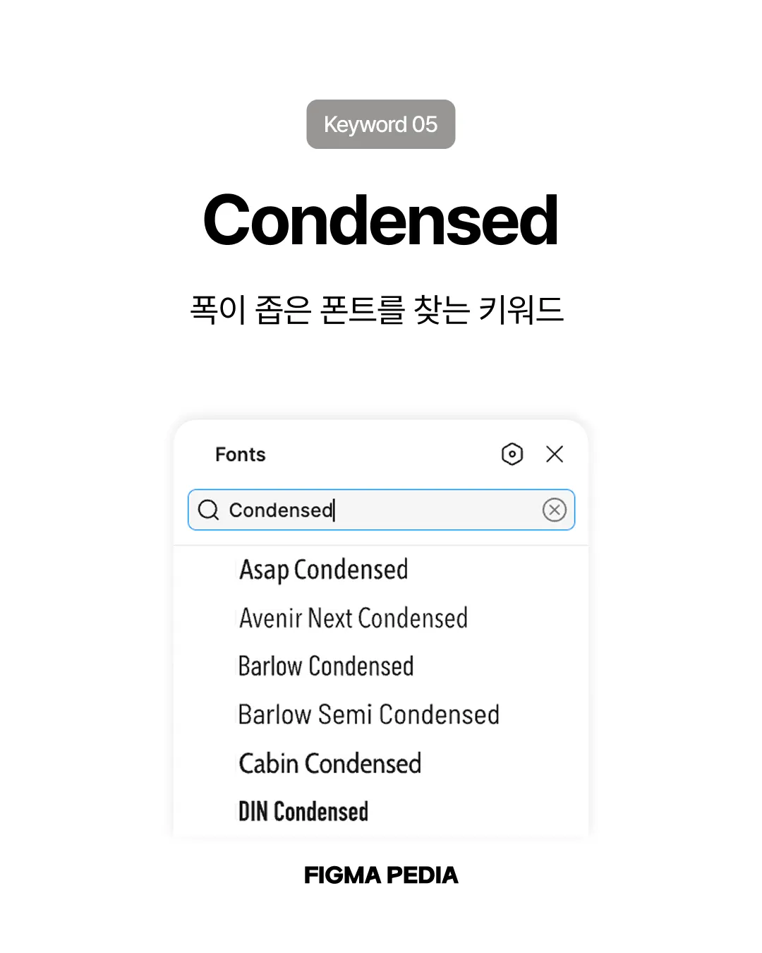 Condensed : 폭이 좁은 폰트를 찾는 키워드