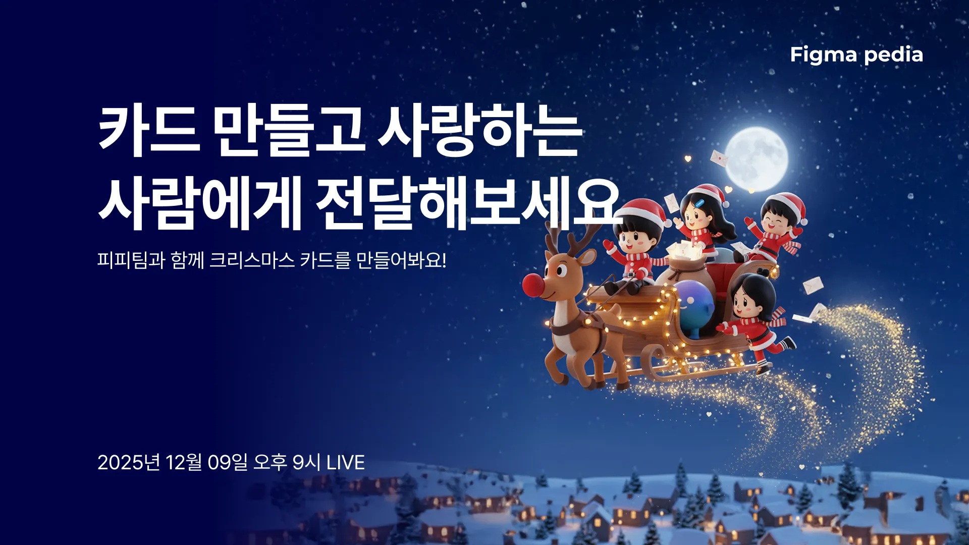 라이브 주제는 [피그마로 크리스마스 카드 만들기] 입니다. 피그마의 프로토타이핑 기능을 활용해서 생동감있게 움직이고 실제로 전달도 할 수 있는 크리스마스 카드 같이 만들어요!