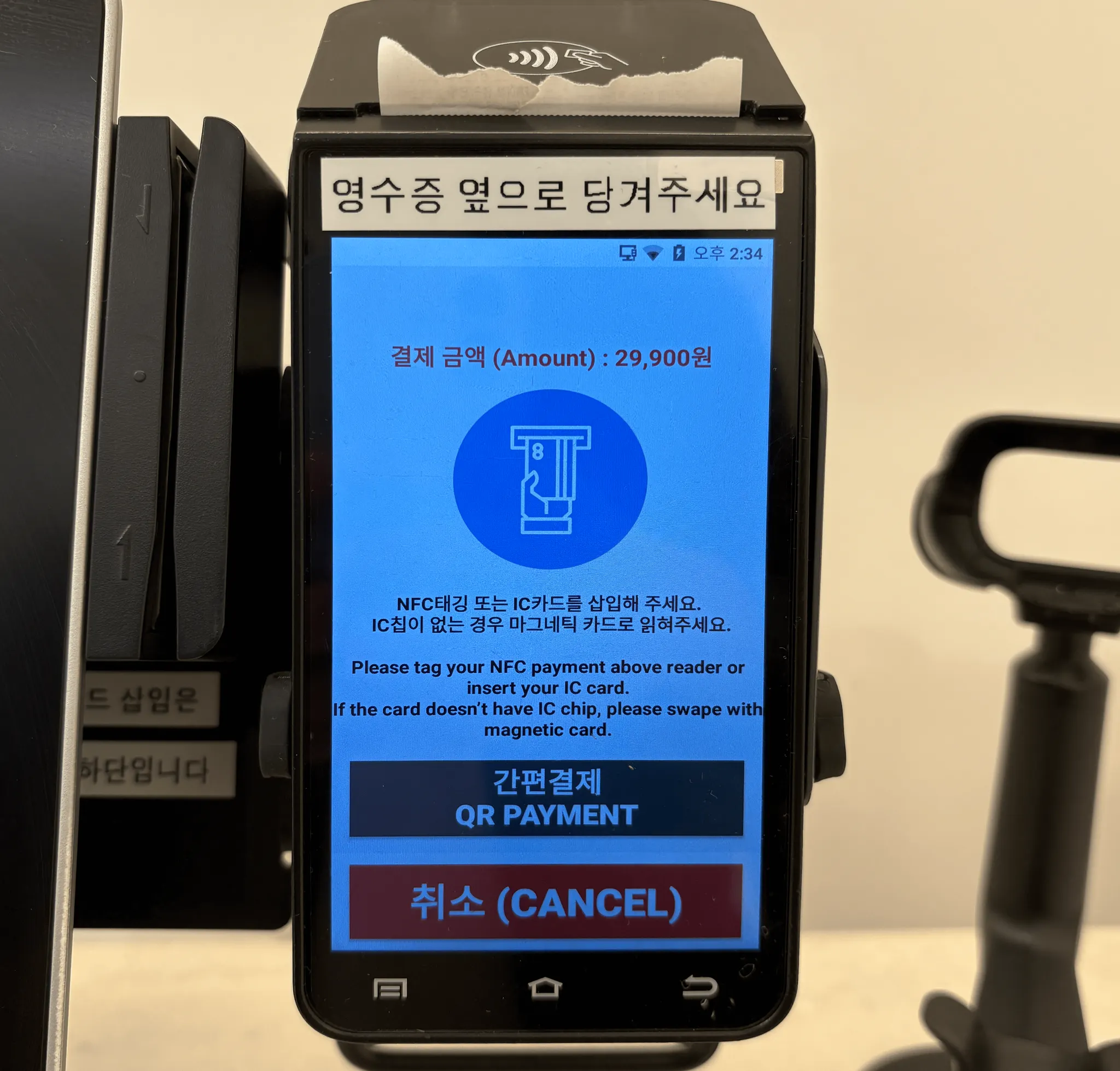 카드 결제 단말기가 사이드 따로 있어 순간 결제 위치를 헤맴