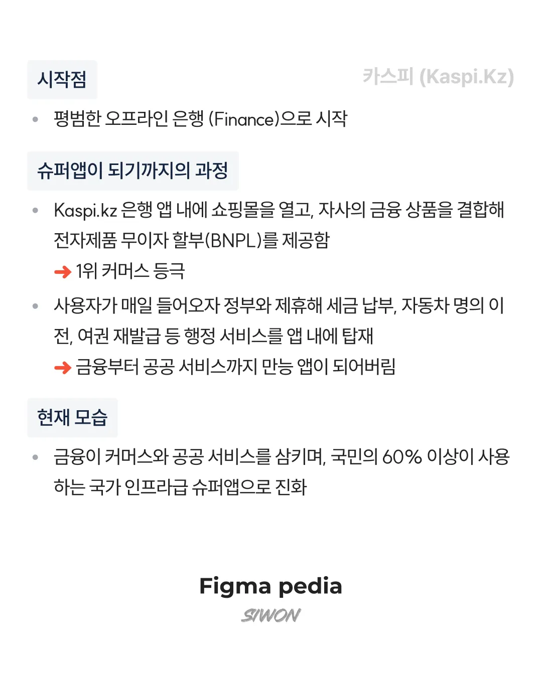 ✓ Kaspi → 금융 + 커머스 + 정부 행정