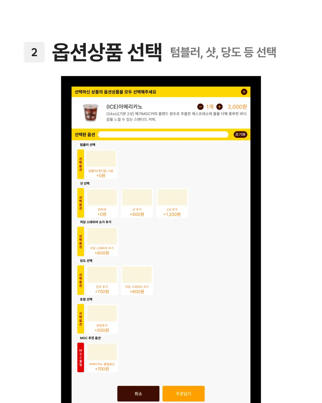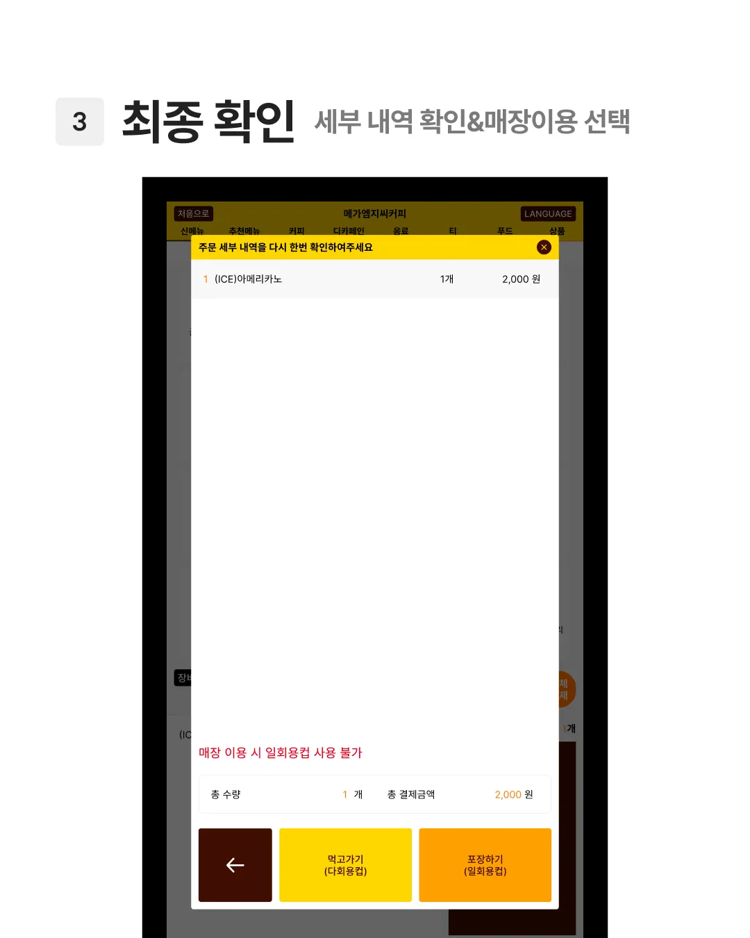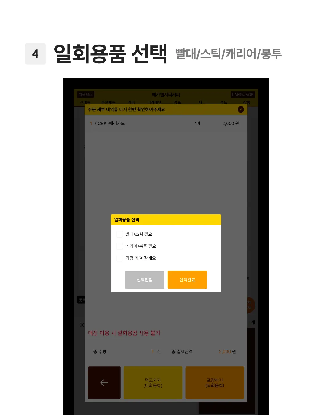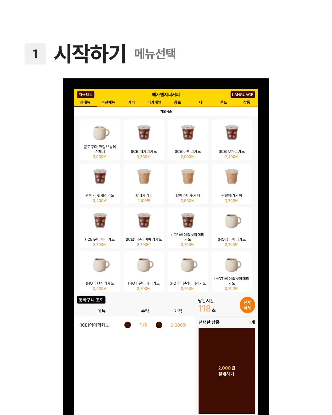 오늘의 키오스크 화면 수집은 메가커피편입니다.