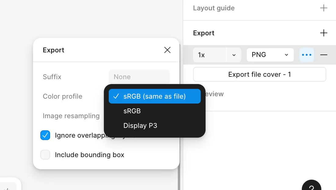Export 탭 > 성정 > color profile > sRGB (same as file) 선택