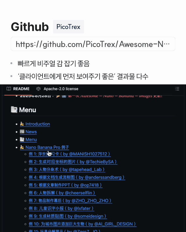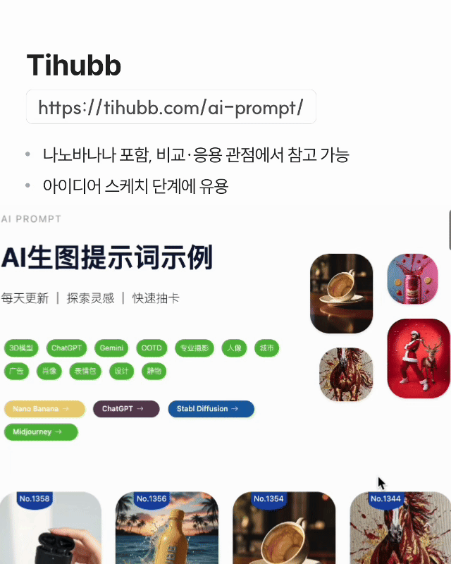 ✓ 나노바나나 포함, 비교·응용 관점에서 참고 가능 ✓ 아이디어 스케치 단계에 유용