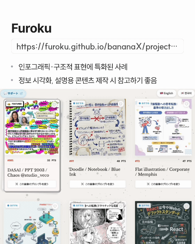 ✓ 인포그래픽·구조적 표현에 특화된 사례 ✓ 정보 시각화, 설명용 콘텐츠 제작 시 참고하기 좋음