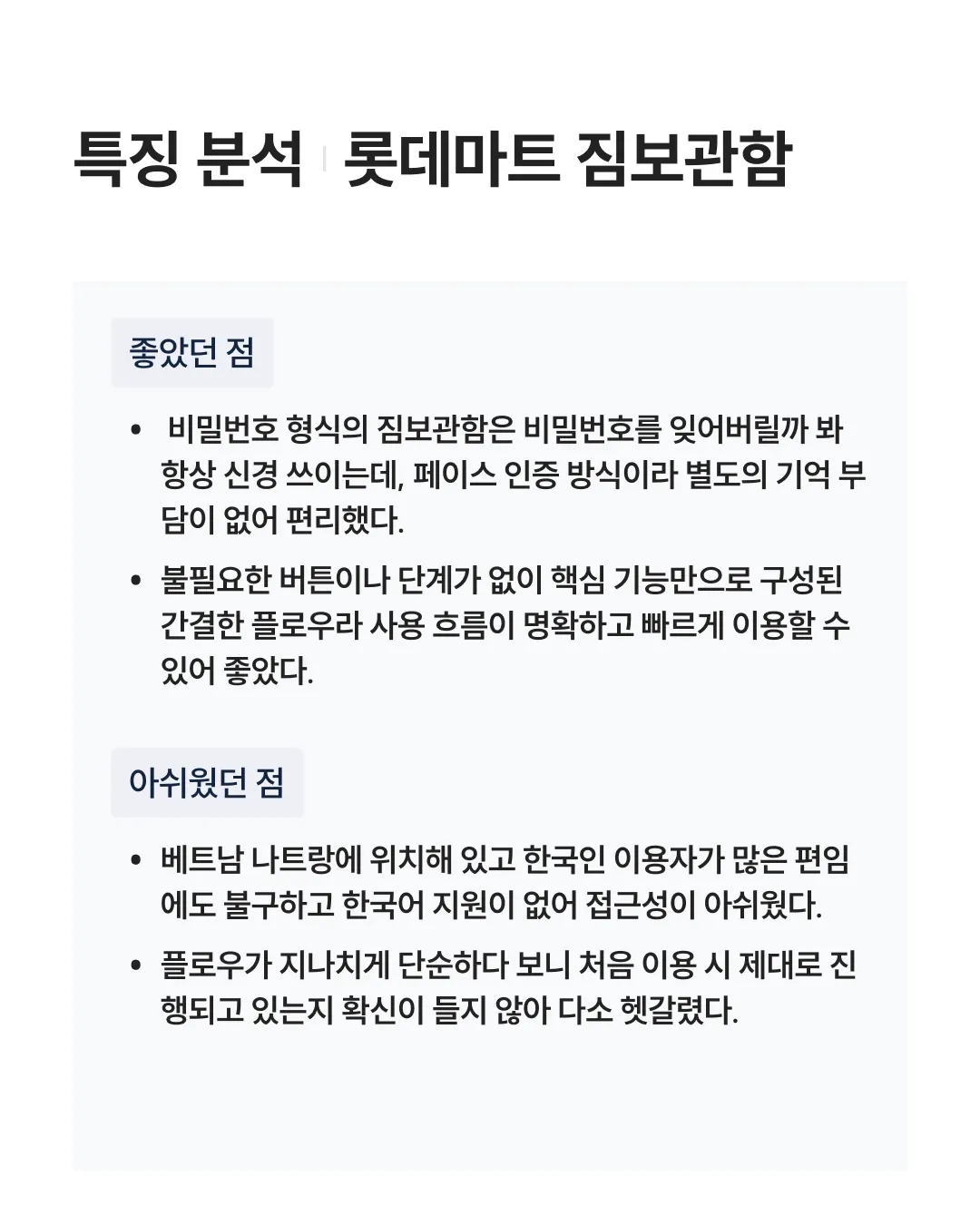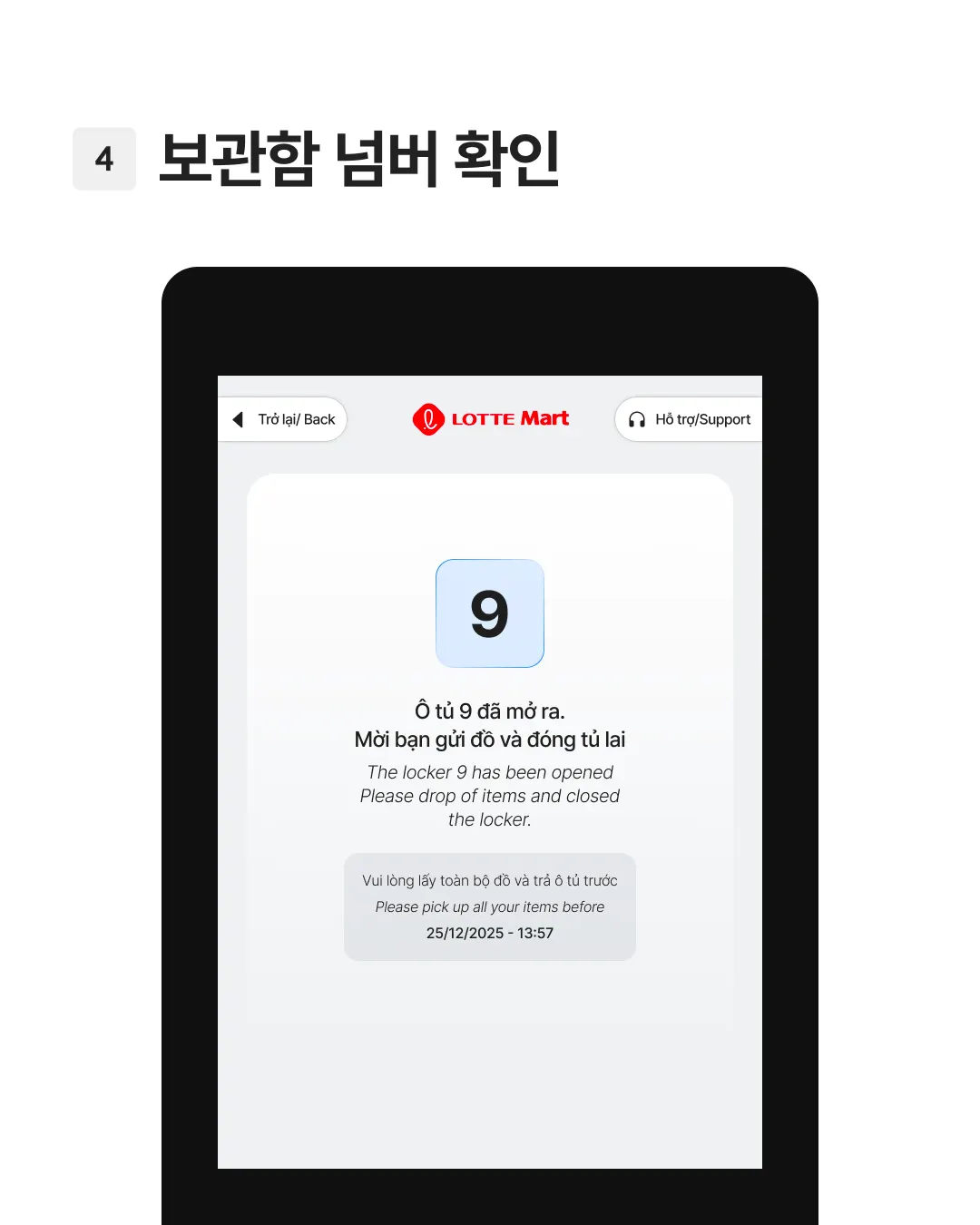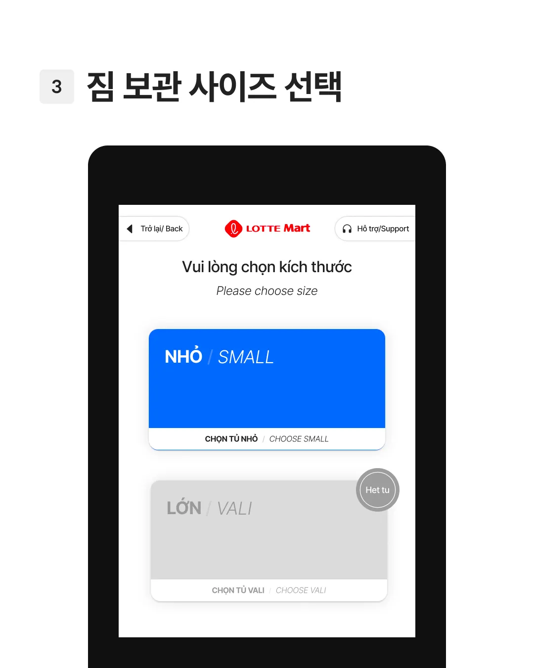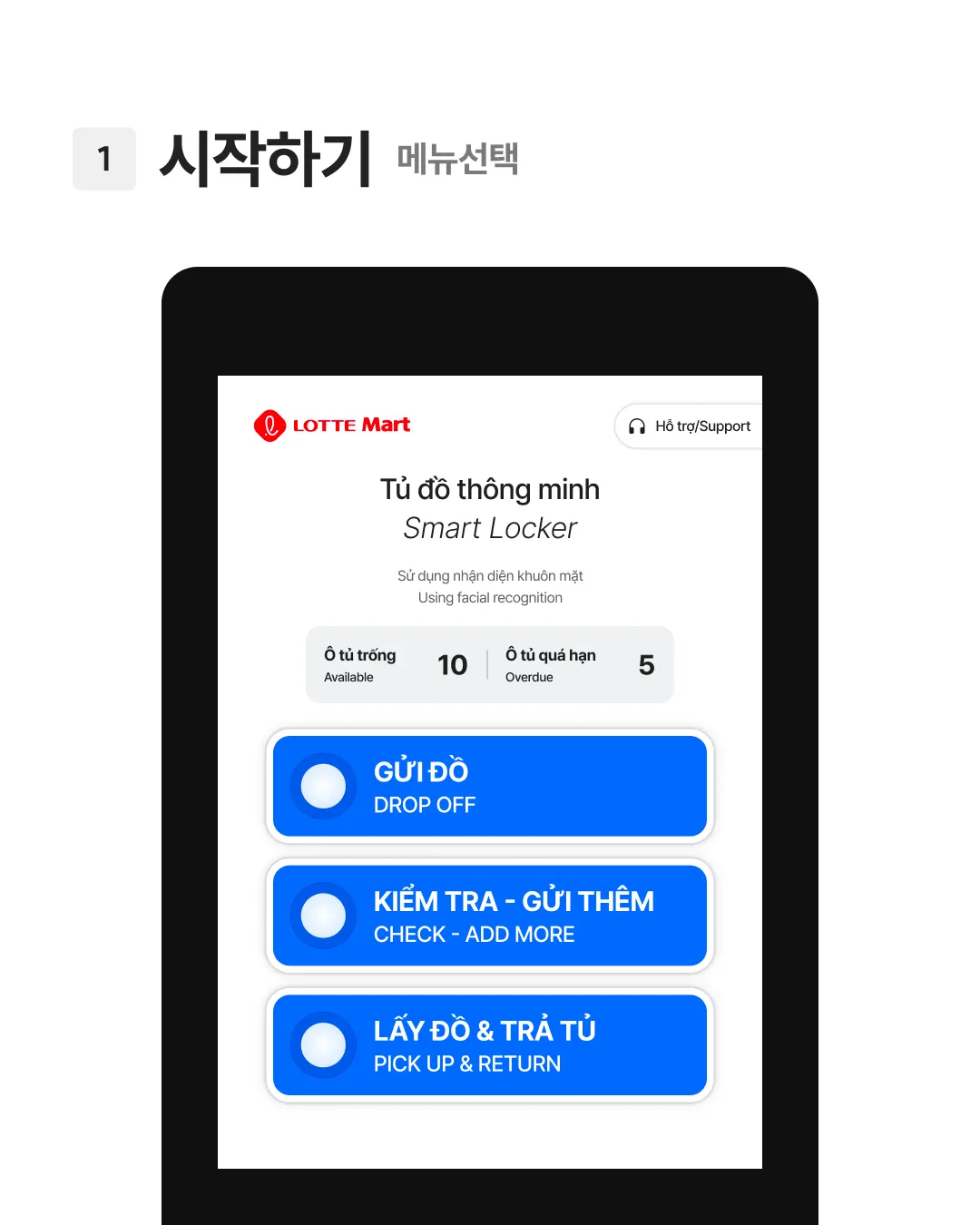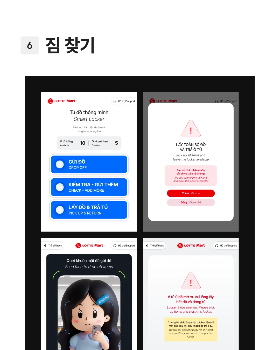 오늘의 키오스크 화면 수집은 베트남 롯데마트 짐보관함편입니다. 촬영한 UI 화면을 참고하여 클론 디자인도 진행해 보았는데, 클론 디자인 특성상 폰트, 색상, 크기, 이미지, 패딩 등은 실제와 다를 수 있습니다. 화면 구성만 참고해 주시면 감사하겠습니다.