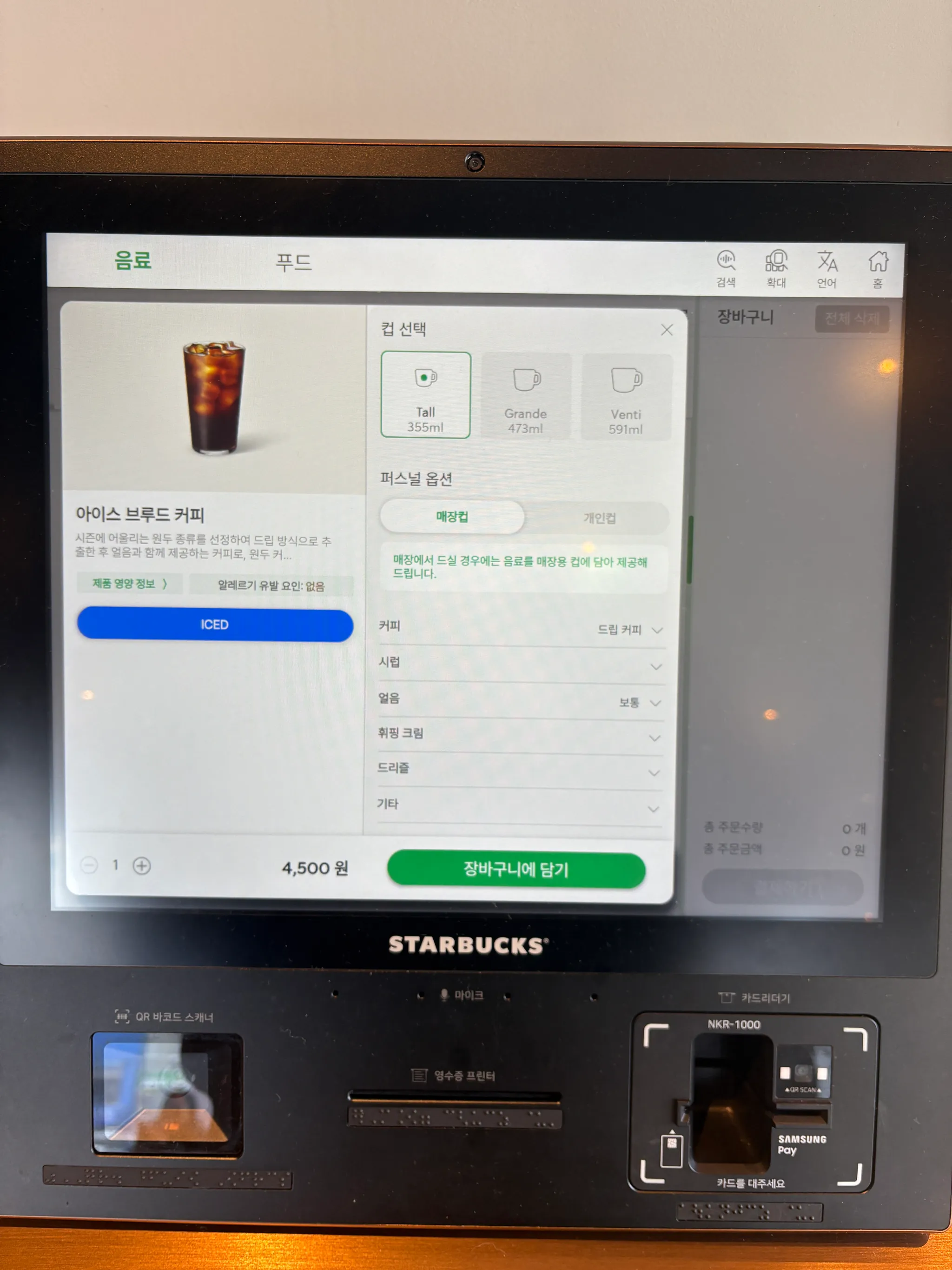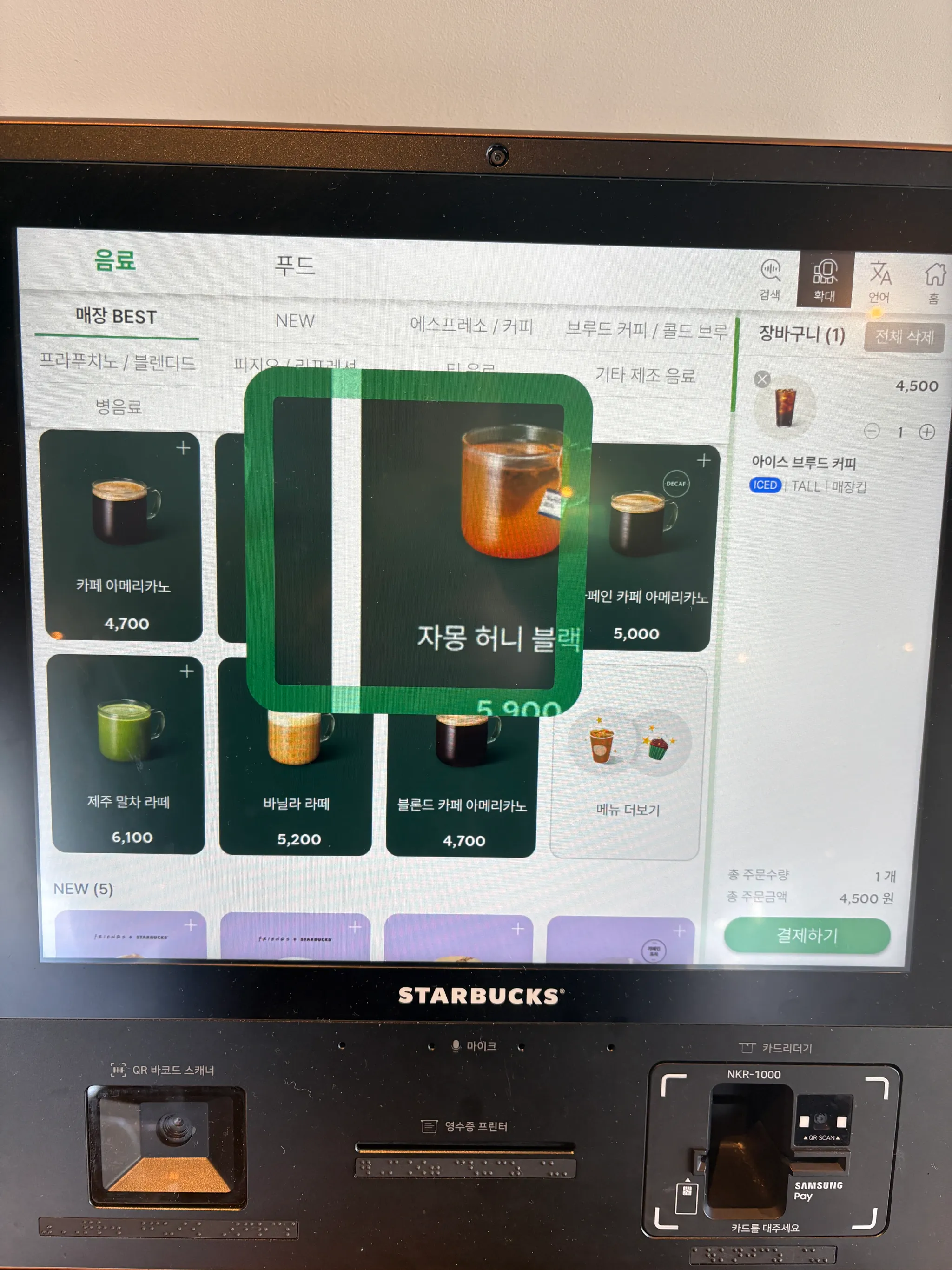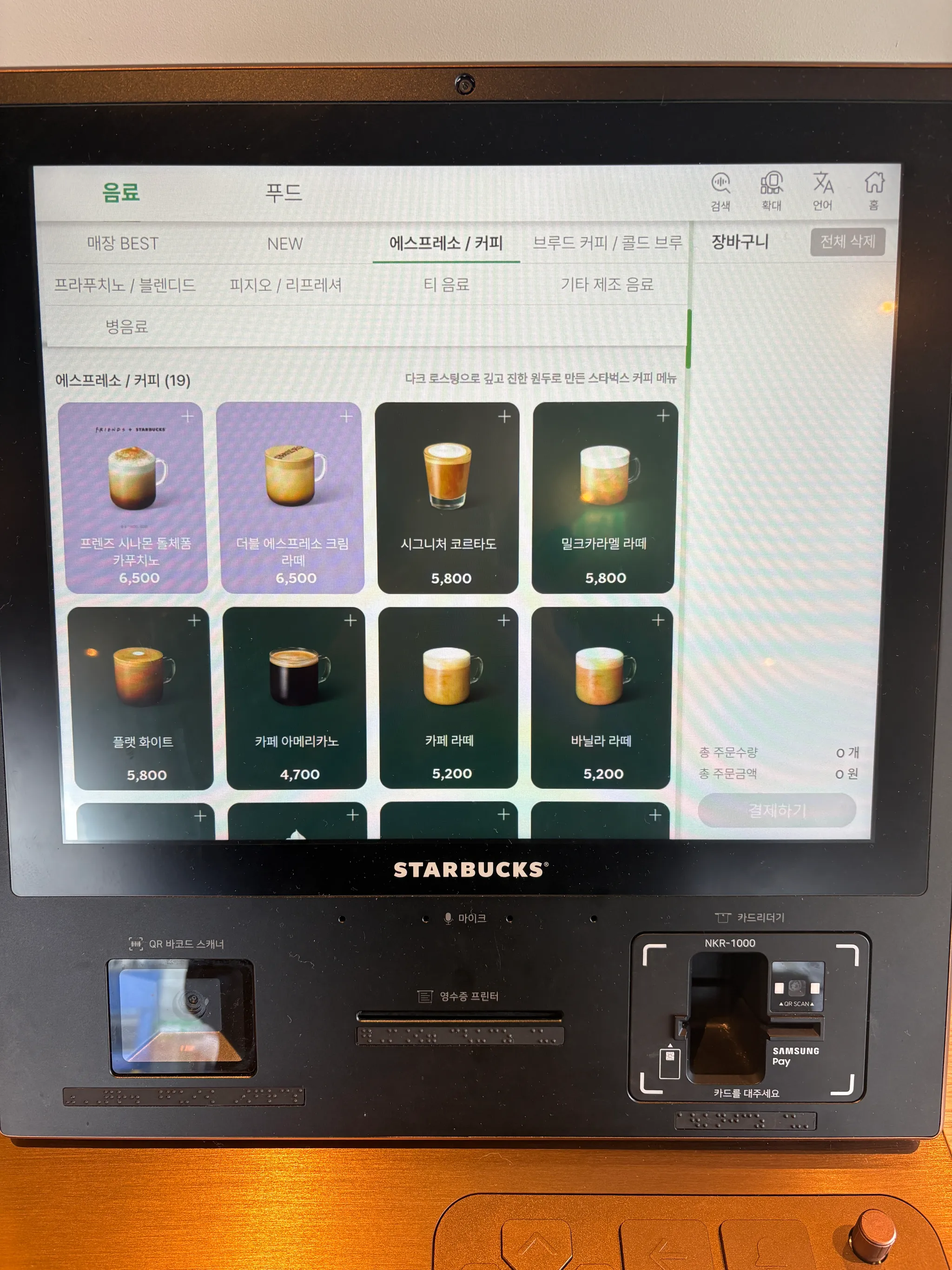 스타벅스 메뉴 주문용 키오스크를 수집했습니다. 현재 스타벅스 키오스크는 일부 매장에만 배치되어 있다고 합니다. (저는 홍익대학교 동교점에서 만나볼 수 있었습니다)