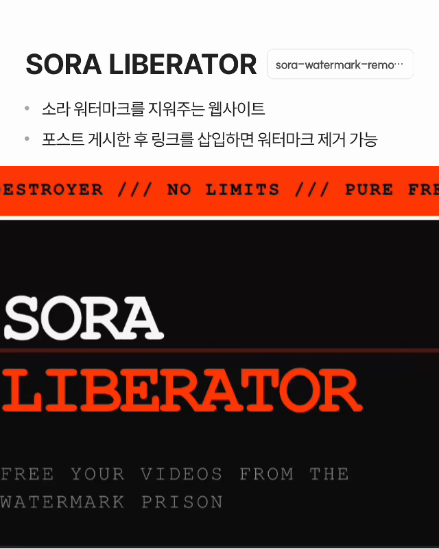 ✓ Sora 영상에 포함된 워터마크 제거 지원 ✓ 게시된 포스트 링크만 입력하면 처리 가능