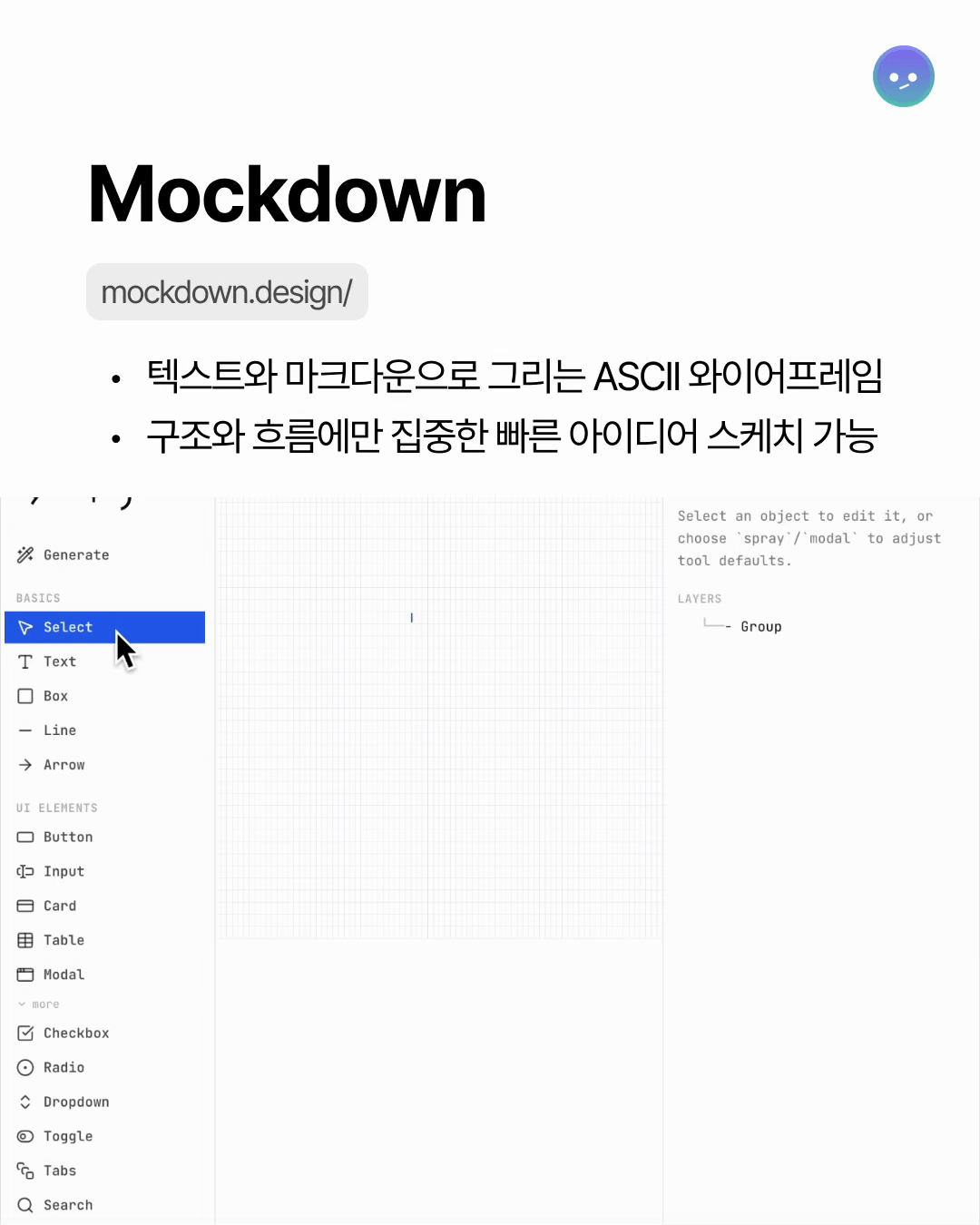 구조와 흐름에만 집중한 빠른 아이디어 스케치 가능