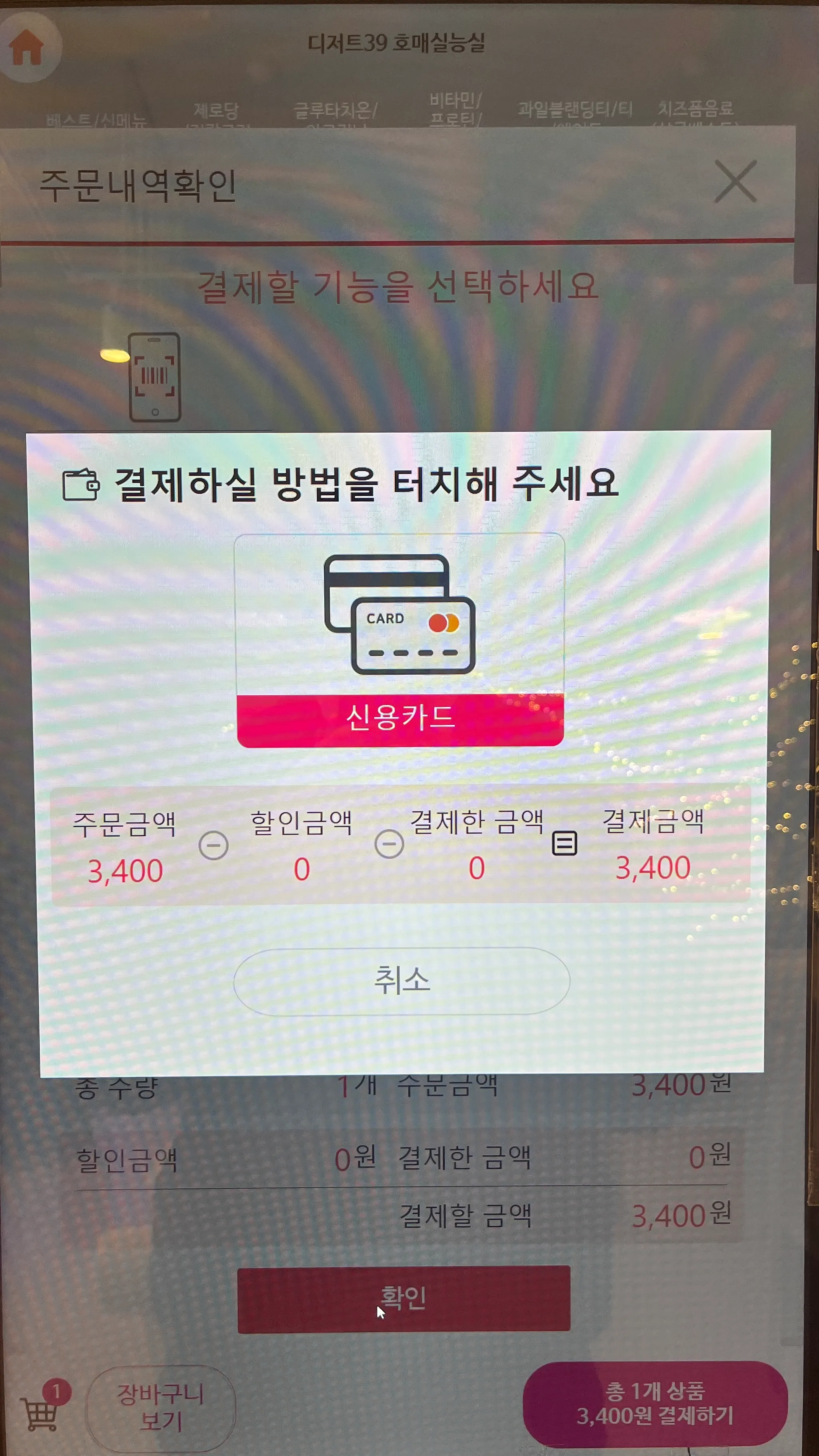 그밖에 내가 선택한 메뉴를 장바구니를 통해서가 아니라 바로 볼 수 있다거나, 결제수단이 카드로 한정 되어있다는 점이 아쉬웠다.