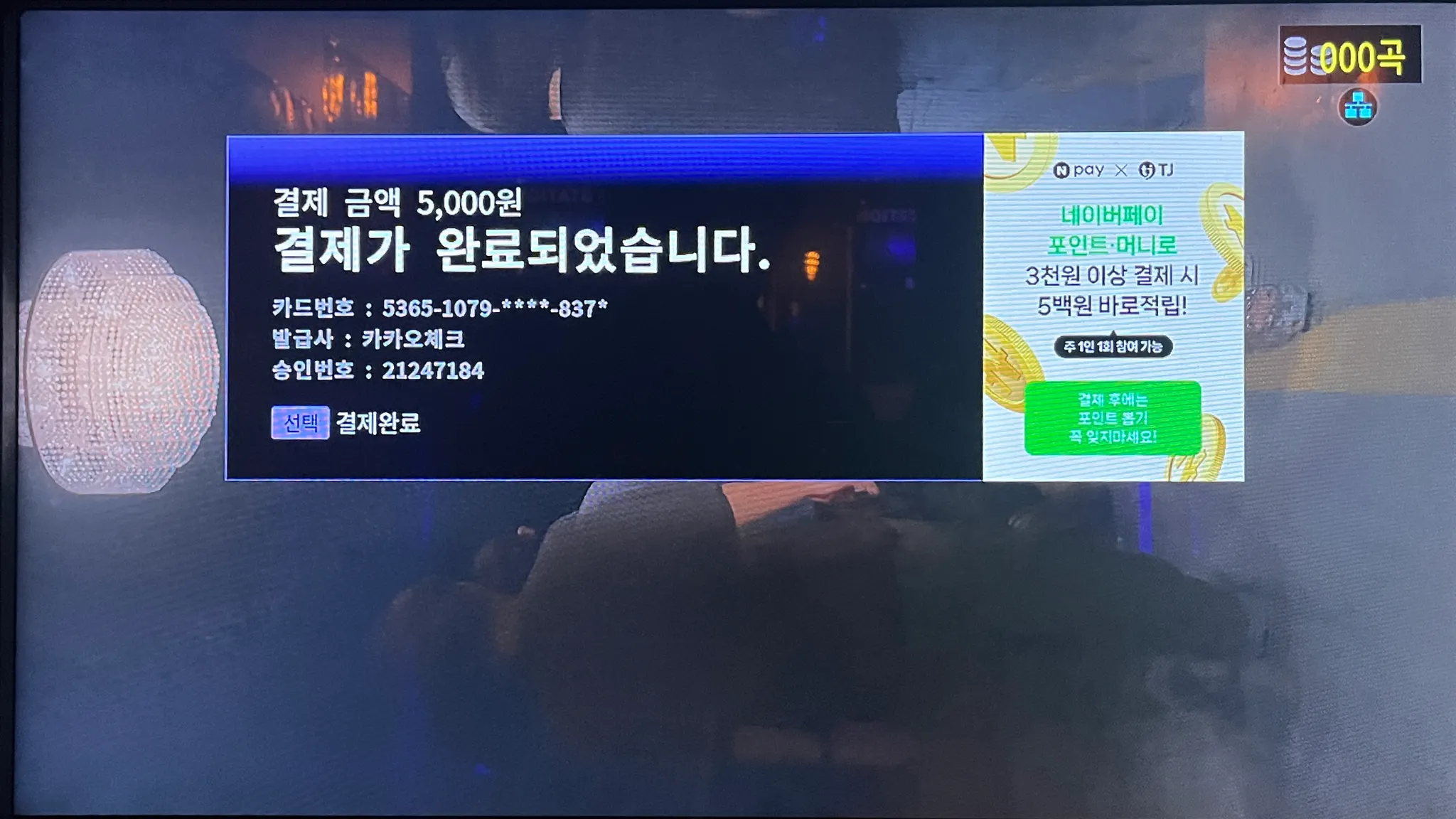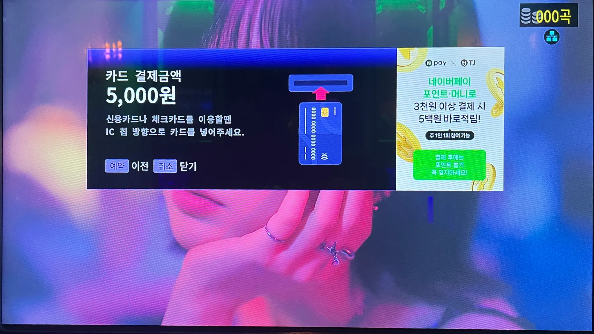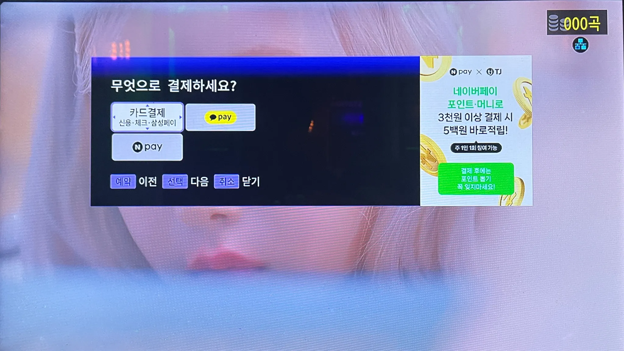 노래방 결제를 리모컨으로 한다는 점이 낯설 수도 있는 사용자를 위해 하단에 무엇을 누르면 취소가 되고 무엇을 누르면 확인이 되는지 적어놓은 점이 사용자를 배려한다는 느낌이 들었다.